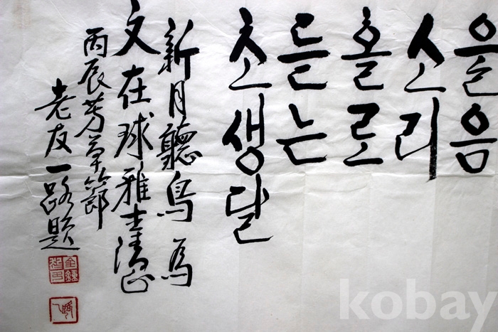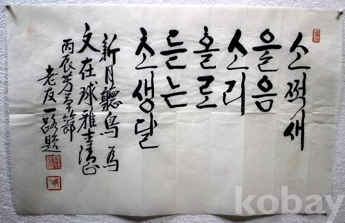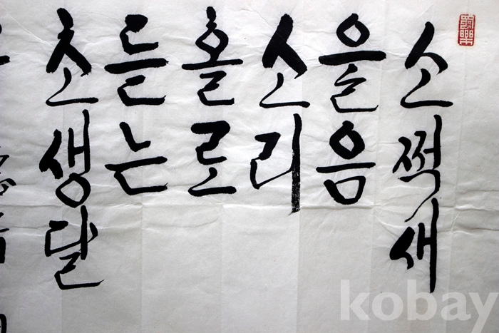 一路學人(일로학인) 김종기의 한글 서예작품 (2) - 소쩍새 울음소리 홀로 듣는 초생달...