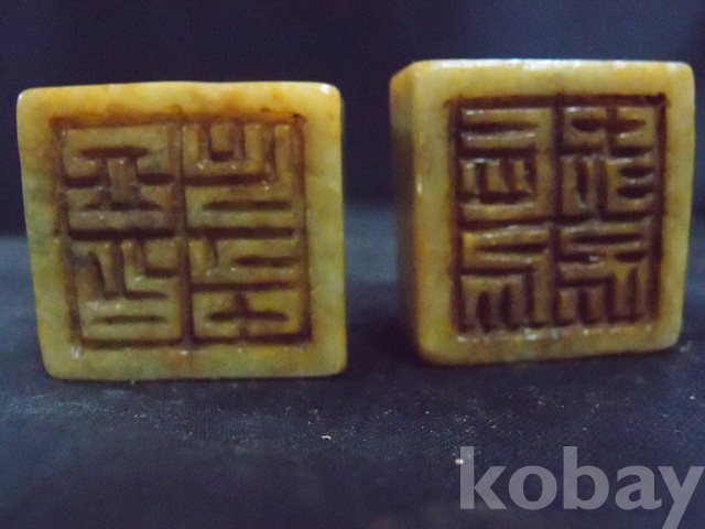 b-85.옥돌로 수작업으로 깍아만든 옥낙관 2개일괄