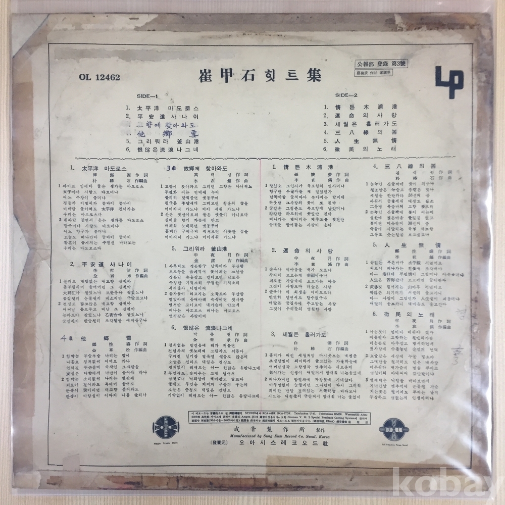 . 가요음반 대부분은 휘어짐이나 손상을 방지하기 위해 무지싱글자킷을 하나 더 사용하여 보관되었던 음반들입니다.