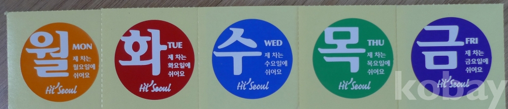 서울시 승용차 요일제 스티커 5장