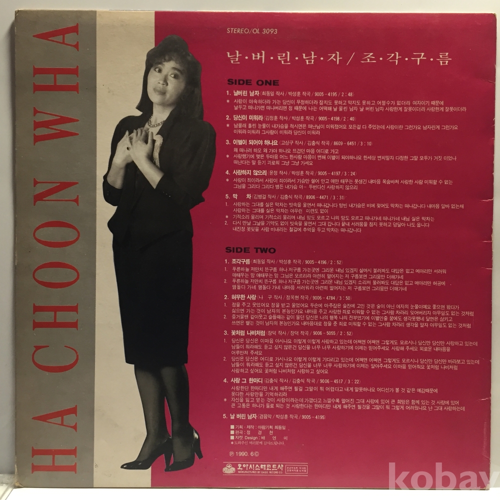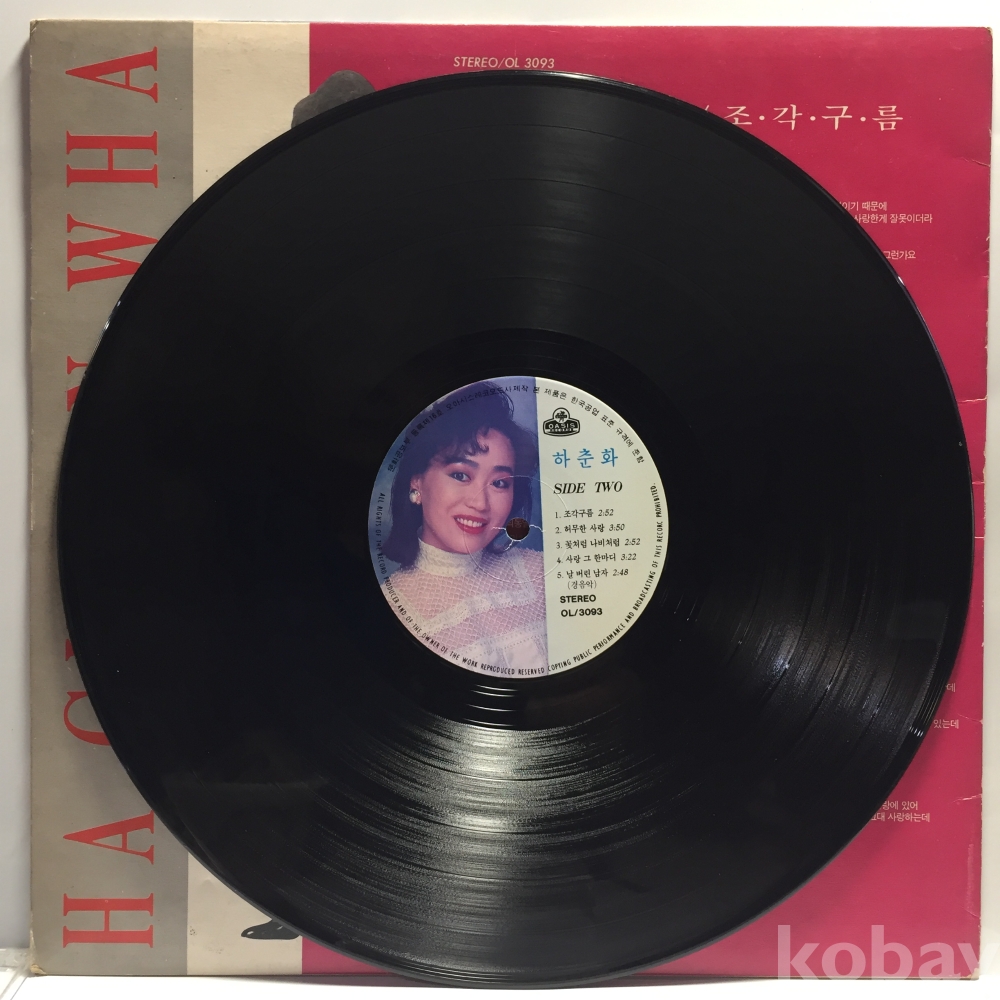 LP 300-24 하춘화 - 날버린 남자 자켓 EX+ 알판 EX 90 년 국내