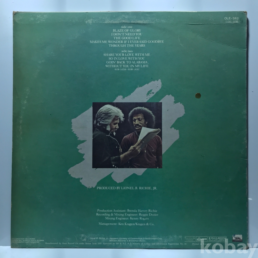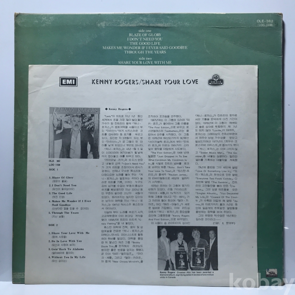 LP 29,300-191 KENNY ROGERS- Share Your Love . 81 오아시스 자켓 EX 알판 EX