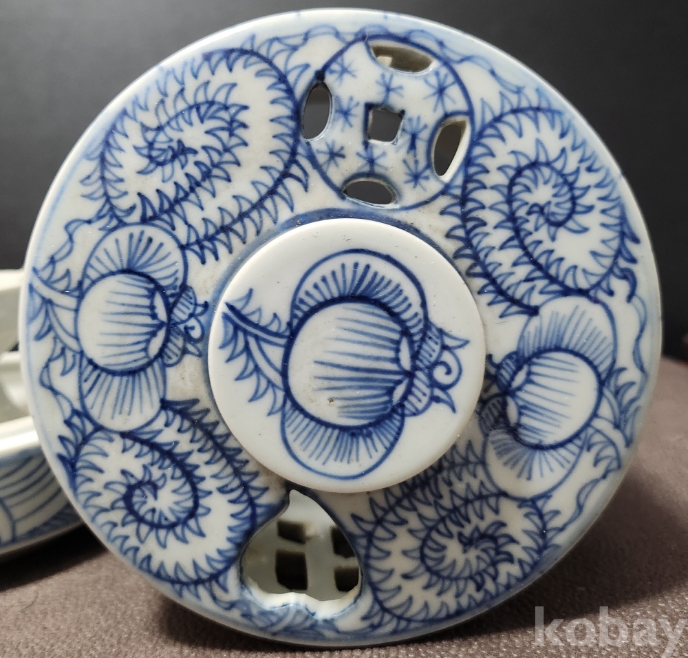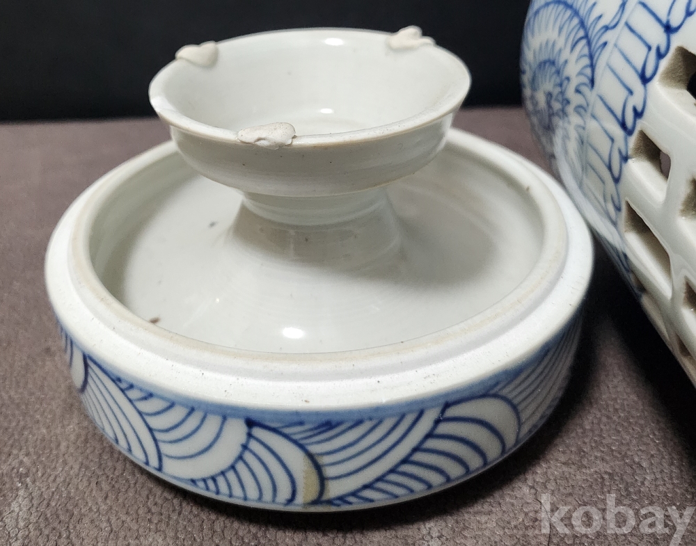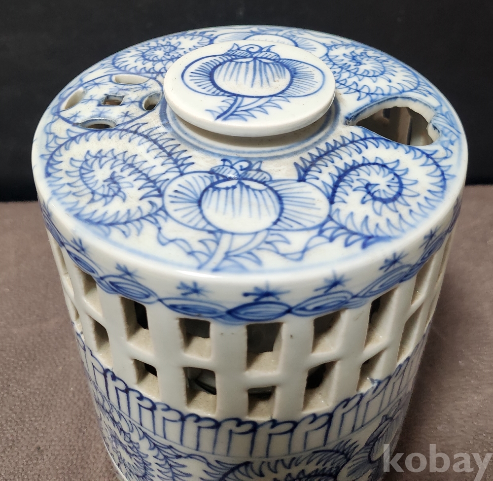 백자청화투각연화문향로 白磁靑華透刻 蓮花文香爐