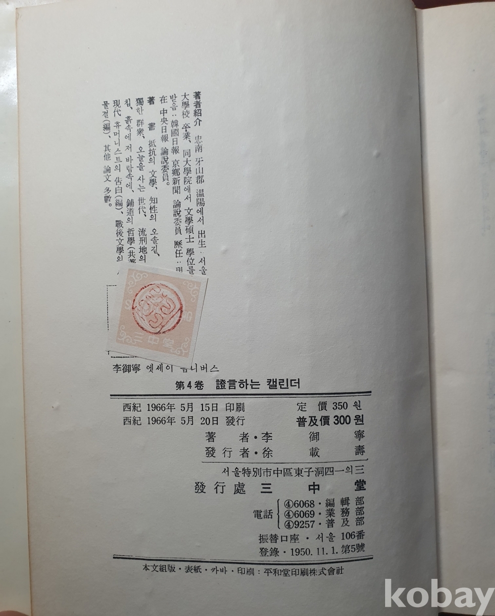 이어령,삼중당,1966년 초판,상태는 양호 깨끗한 책,하드커버