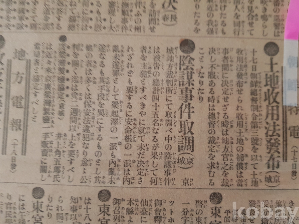 [FF7]*東京日日新聞/1911.4.19./朝鮮特電.토지수용법 발포,음모사건 취조,광량만 제염협정