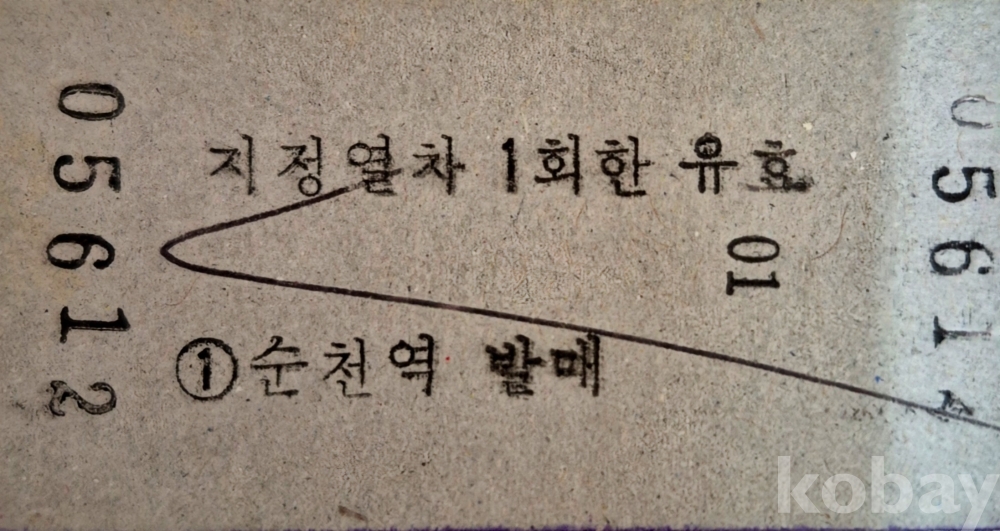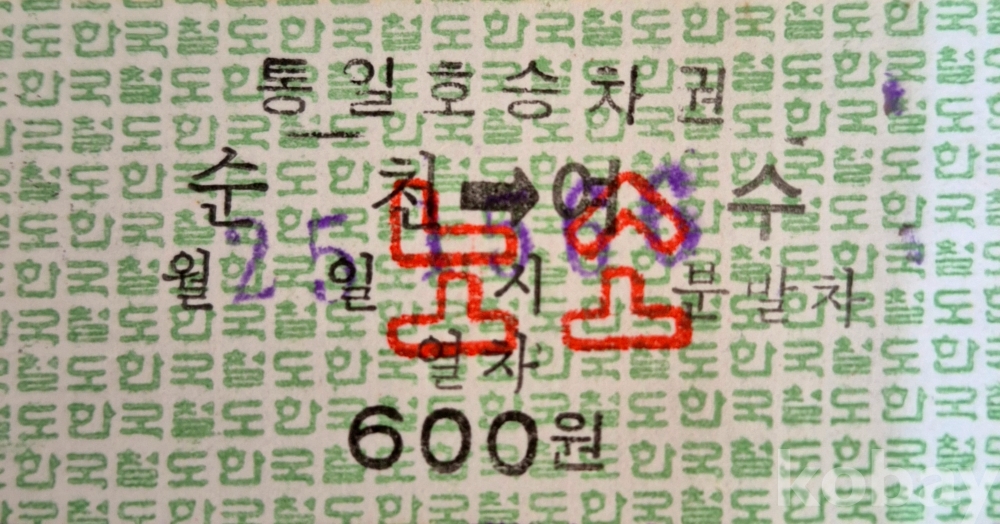 통일호 승차권 순천-여수 노소입니다.