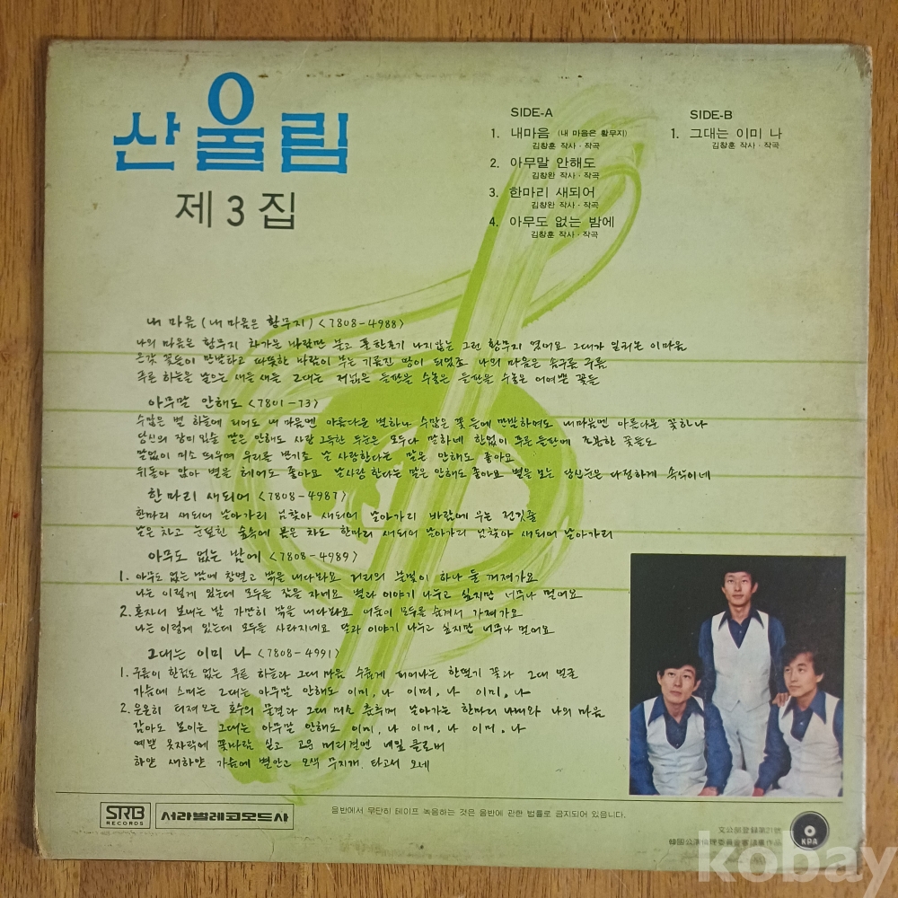 | 자켓상태 | EX : 약간의 마모, 모서리 찢김 존재 | 음반상태 | EX : 재생에 영향 없는 가벼운 기스 존재 | 발매정보 | 초반 | 가사지여부 | 무 |