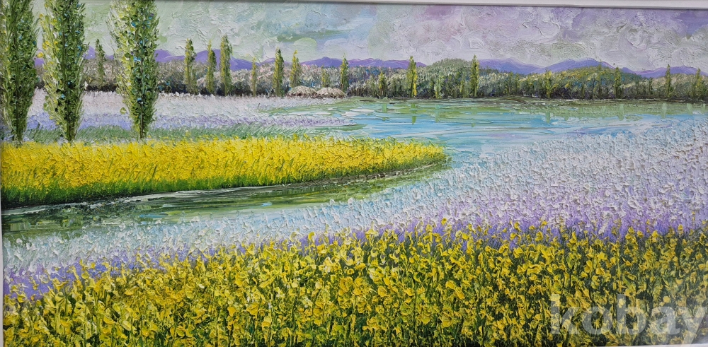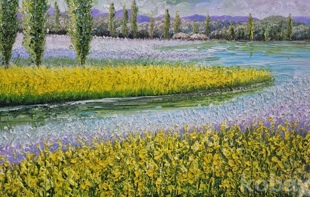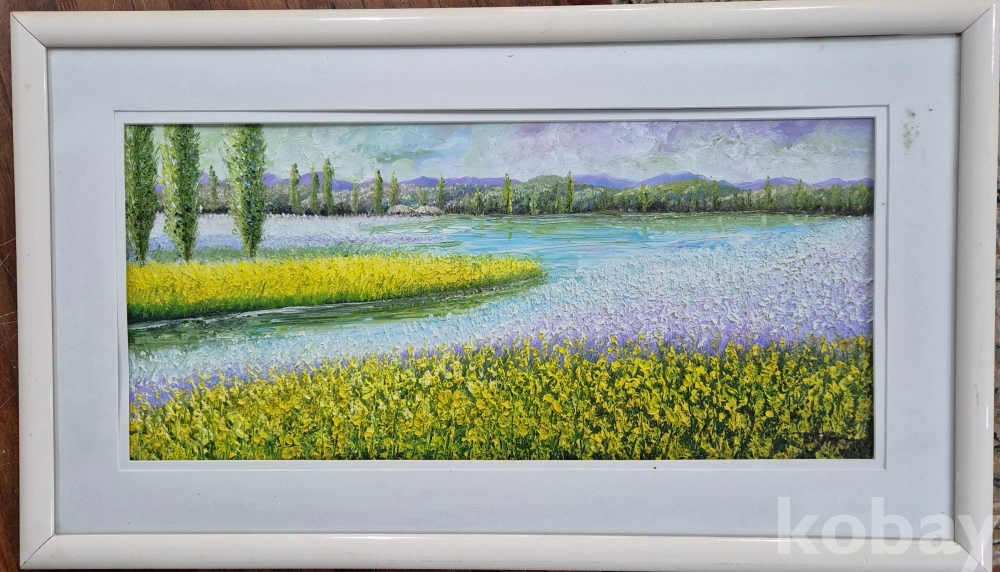 질감 두텁고 독특한 붓놀림으로 시원스럽게 잘 그려진 풍경 유화 작품'이오니 작품 이미지상 싸인'등