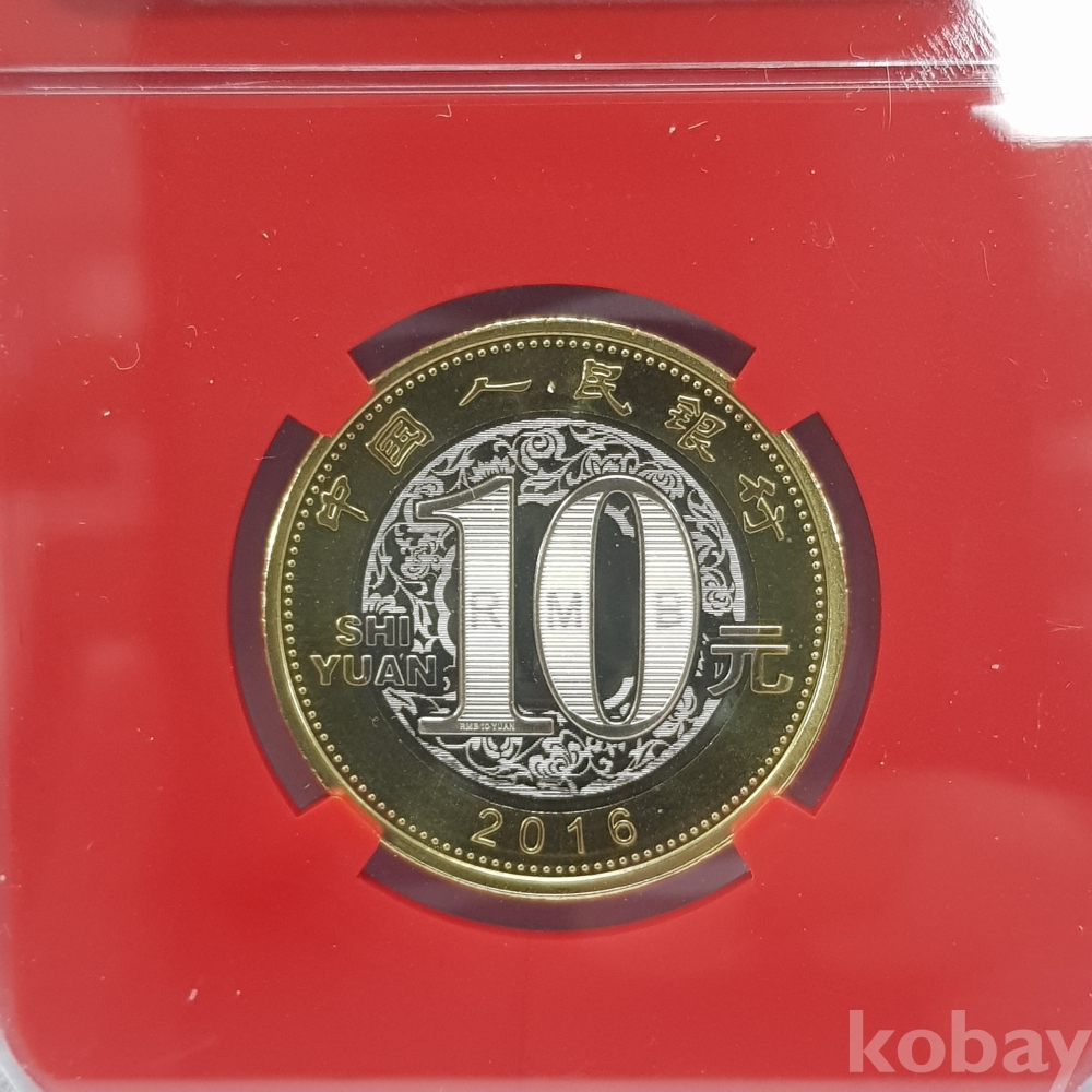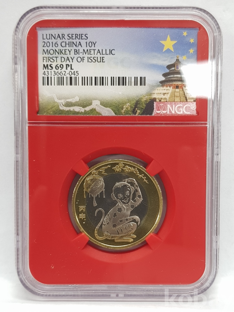 - 중국 2016년 원숭이의 해 10위안 바이메탈 기념 NGC MS 69 PL 그레이딩 주화