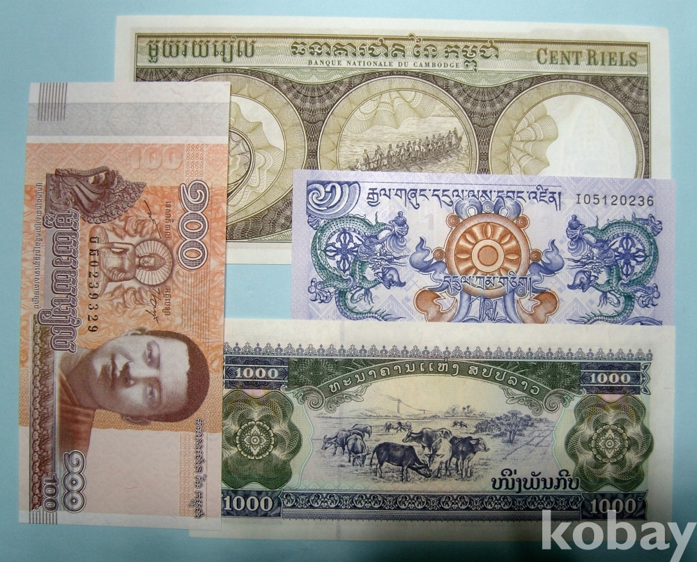 캄보디아 2종(지폐), 라오스 1종, 부탄 2종(지폐/동전)미얀마