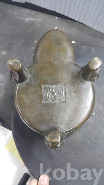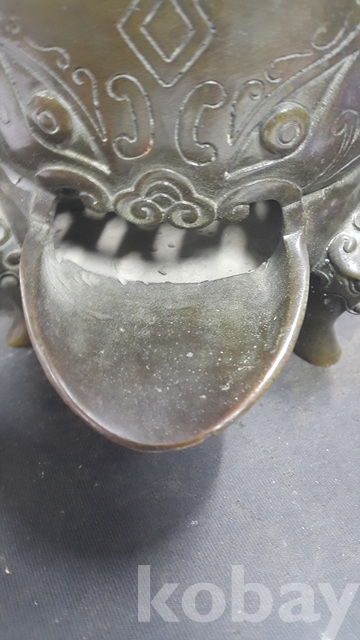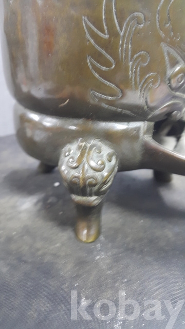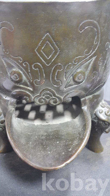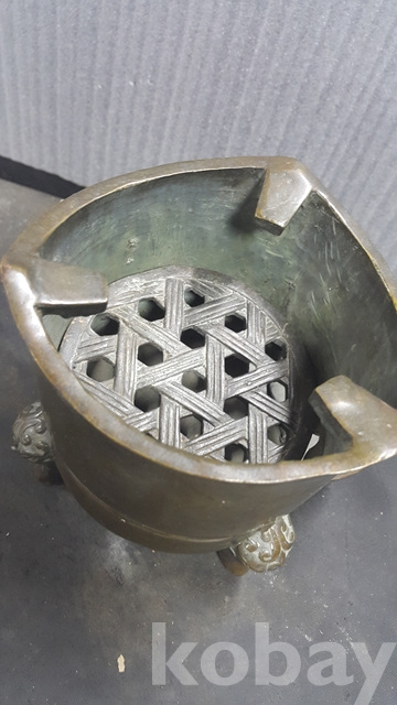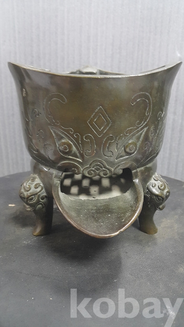 p-2.무거운 오래된 귀면3족황동 찻화로