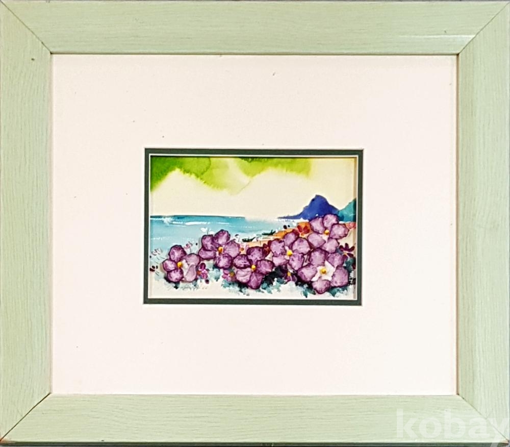 한지 공예로 꽃을 만들어 채색하여 그림위에