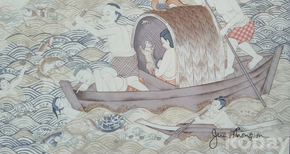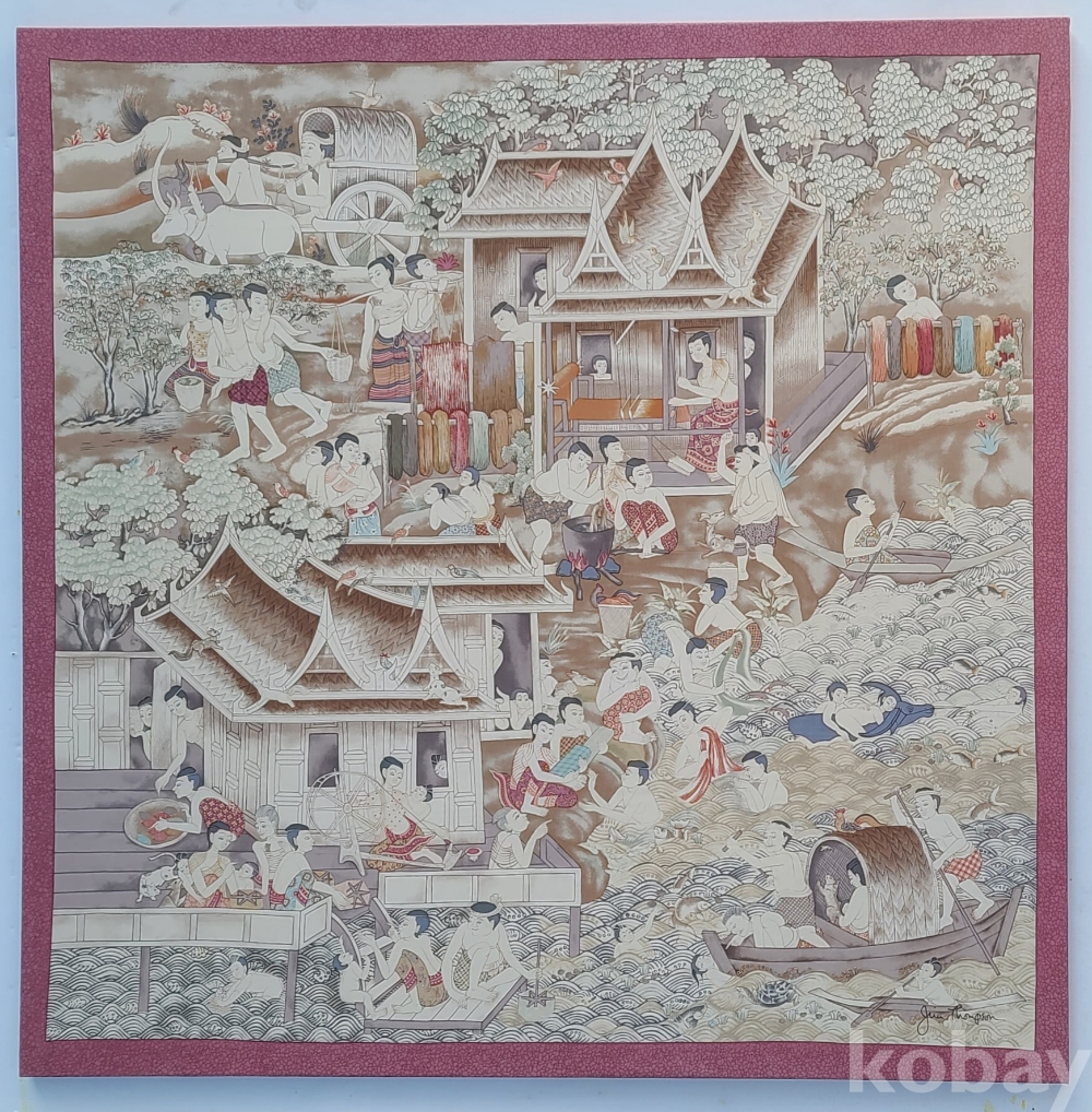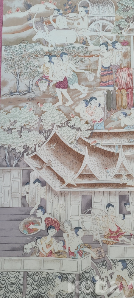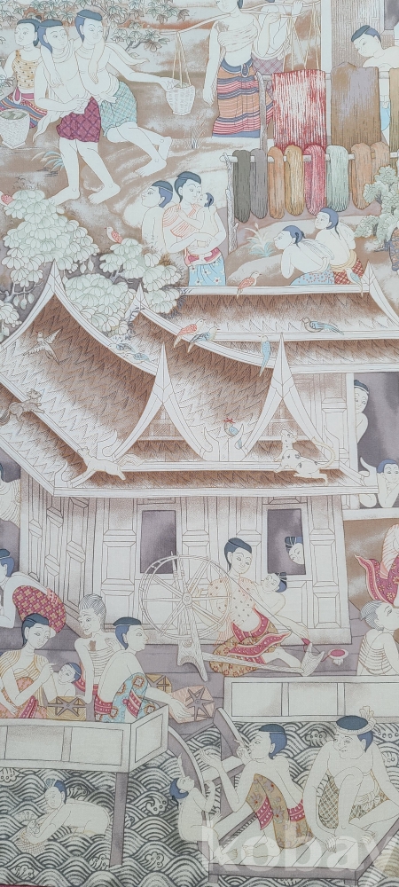 1. 나염?으로 보여지는 데 정확한 기법 모름/ 부착된 띠- 태국, 실크100%.