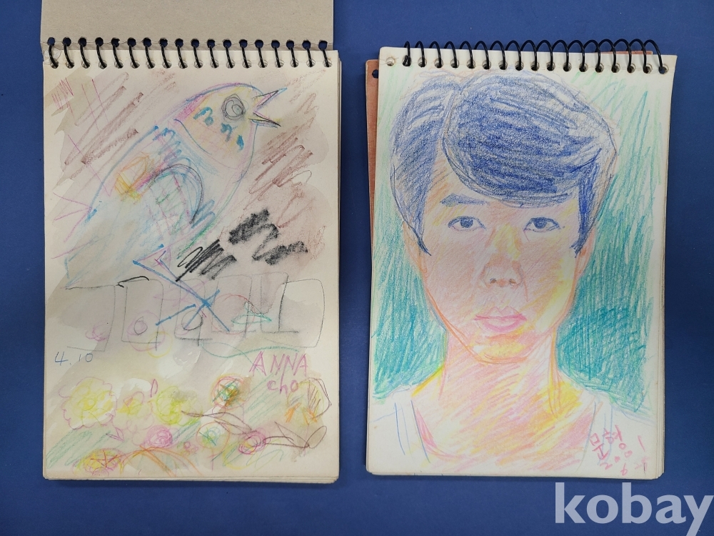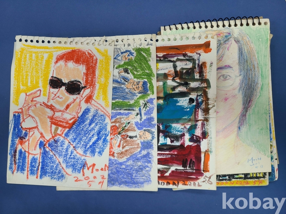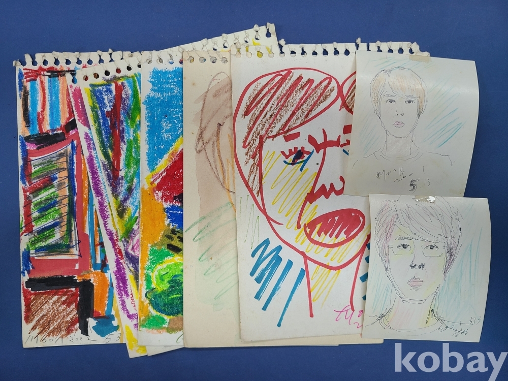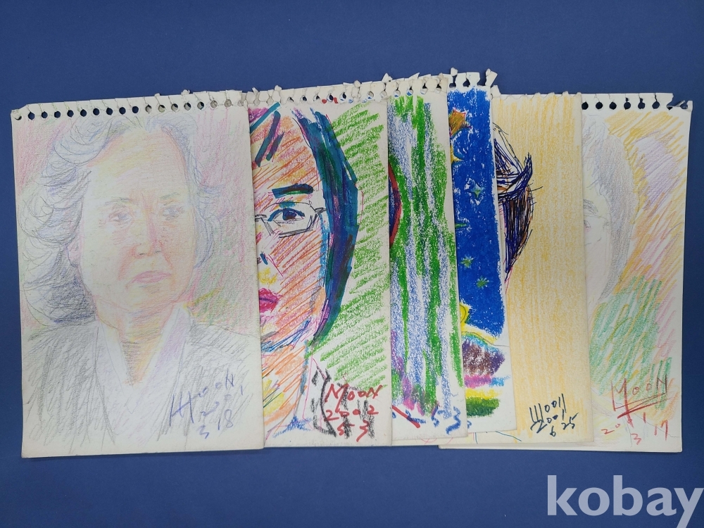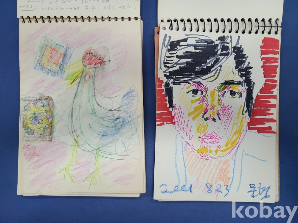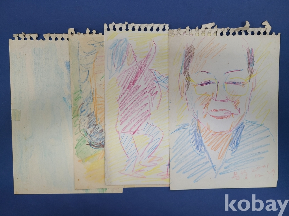 본 출품작은 소형 종이에 제작된 스케치 약 70점으로 구성돼 있으며, 인물 초상과 인체 표현을 중심으로 풍경 및 추상적 이미지가 함께 나타난다. 색연필과 크레용을 사용한 빠른 선묘와 반복적인 필선, 대비되는 색 사용이 화면 전반에 공통적으로 관찰되며, 일부 작품에서는 2001~2002년으로 보이는 연도 표기와 필기 흔적이 확인된다. 전반적으로 관찰 기록과 표현 실험의 성격이 강한 드로잉 작업군으로 구성돼 있다.