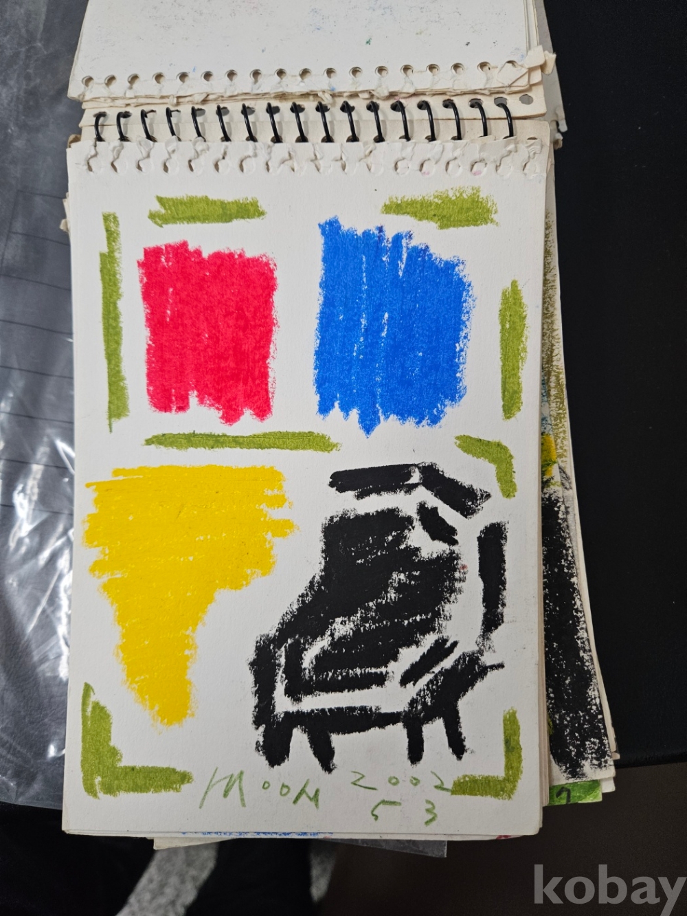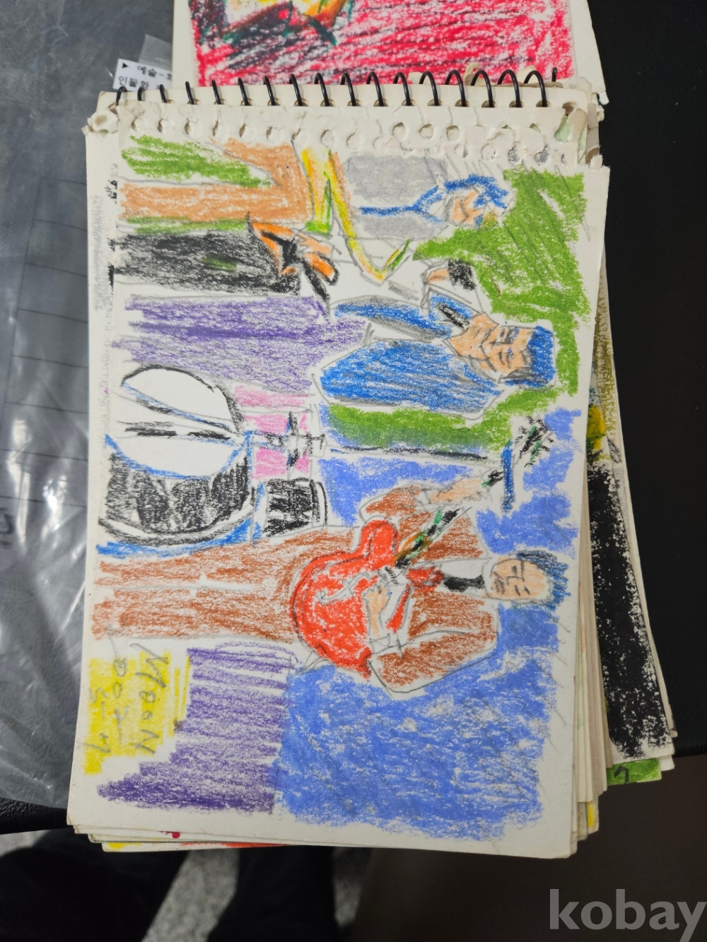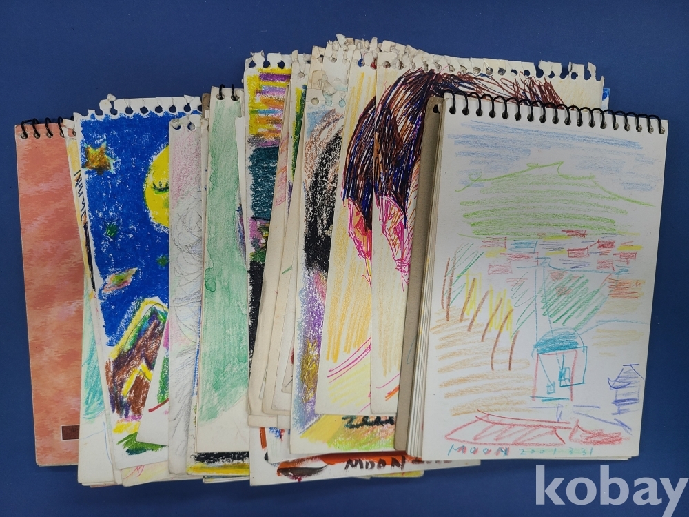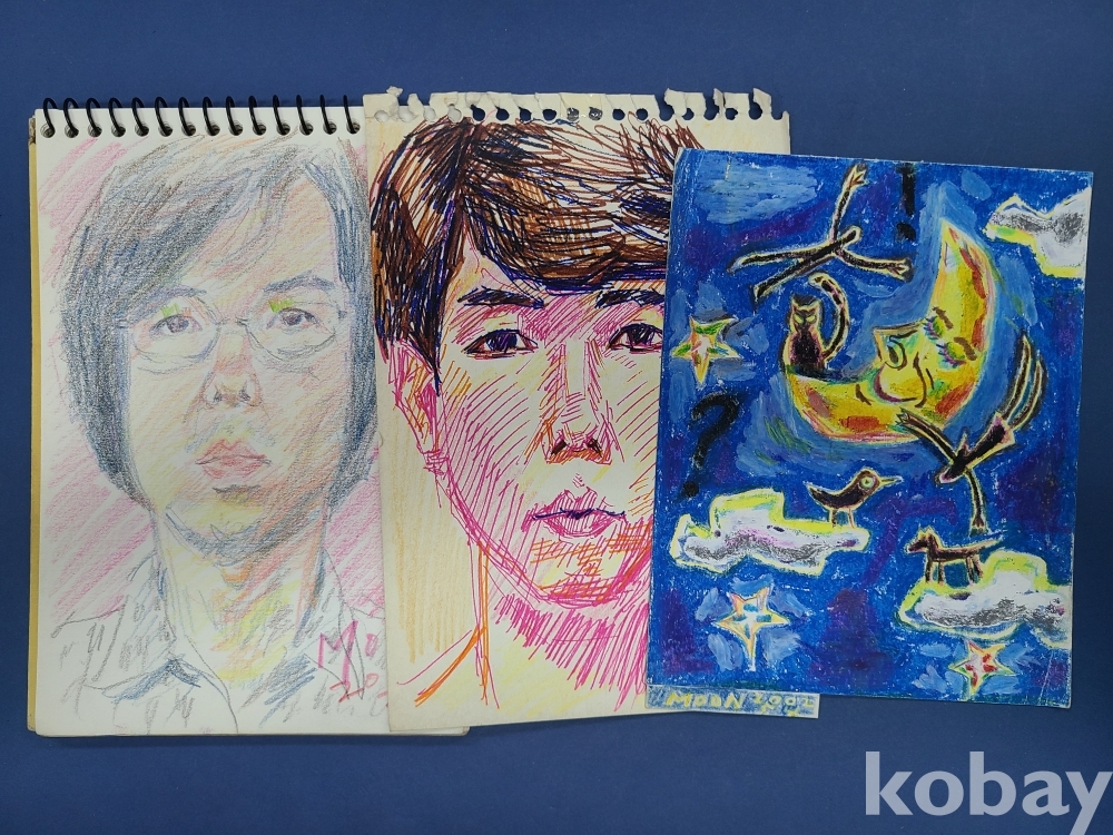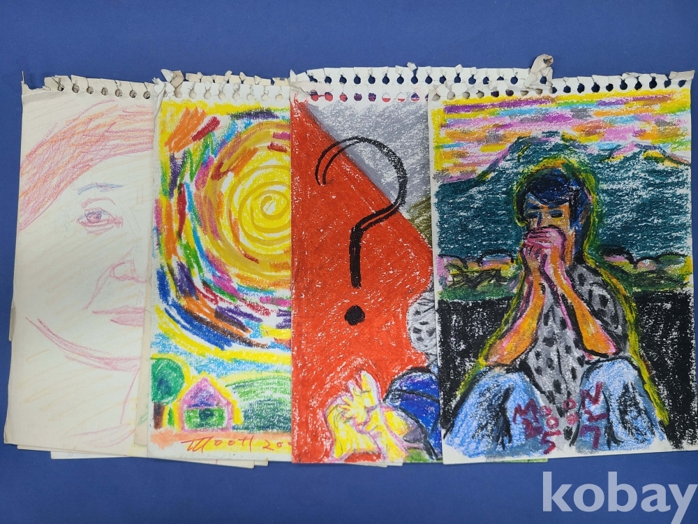 본 출품작은 소형 종이에 제작된 스케치 약 70점으로 구성돼 있으며, 인물 초상과 인체 표현을 중심으로 풍경 및 추상적 이미지가 함께 나타난다. 색연필과 크레용을 사용한 빠른 선묘와 반복적인 필선, 대비되는 색 사용이 화면 전반에 공통적으로 관찰되며, 일부 작품에서는 2001~2002년으로 보이는 연도 표기와 필기 흔적이 확인된다. 전반적으로 관찰 기록과 표현 실험의 성격이 강한 드로잉 작업군으로 구성돼 있다.