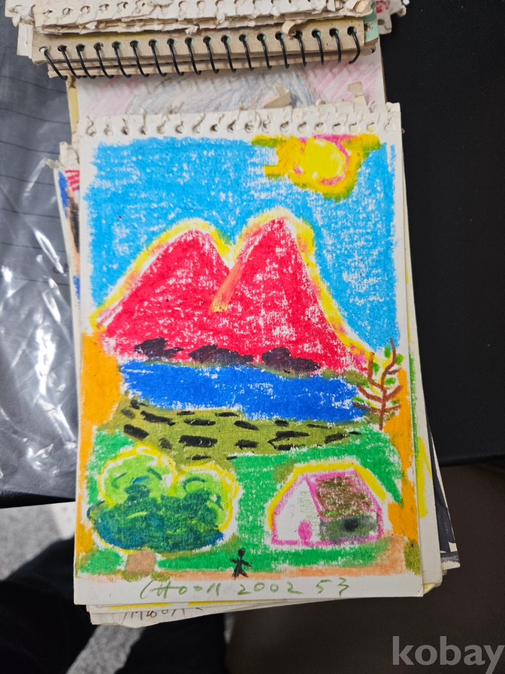 재료 및 기법: 종이에 색연필·크레용