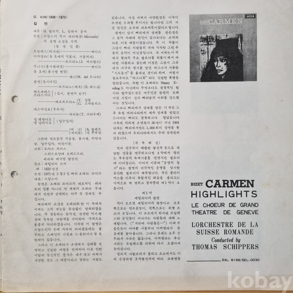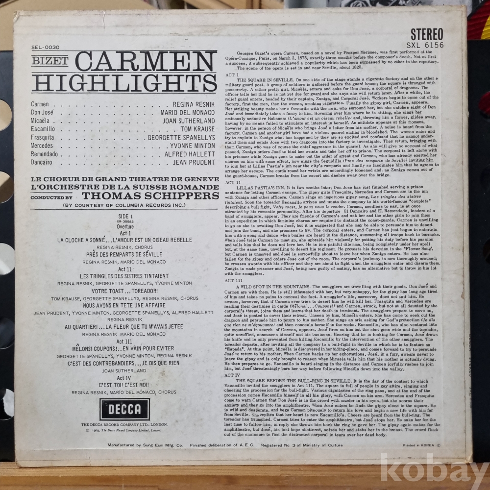 비제 [CARMEN-카르멘] 하이라이트 성음 DECCA 1972년