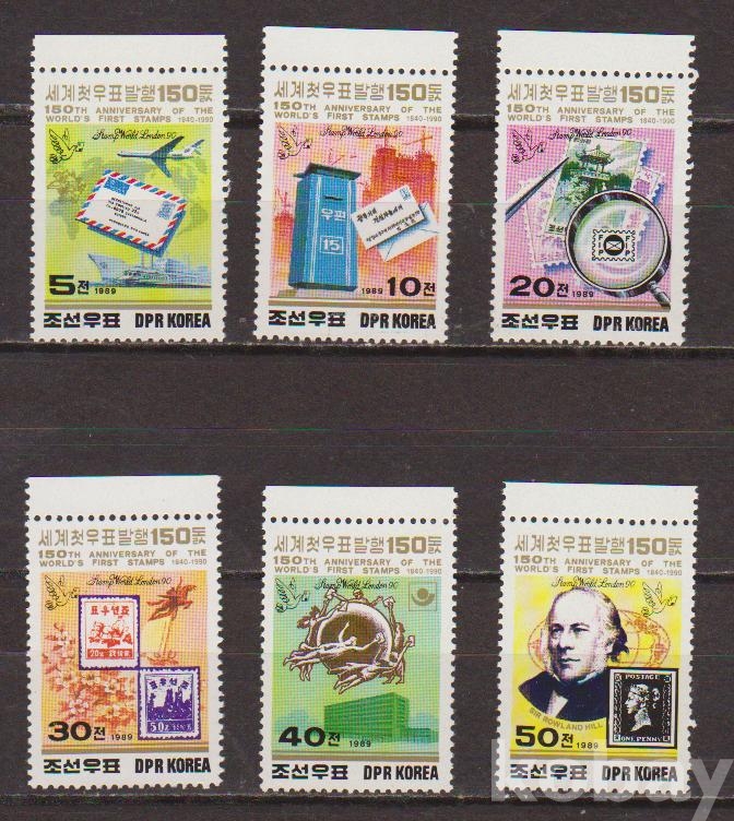 (우편) 북한 1989.8.27 세계 첫 우표발행 150돐 6완 MNH