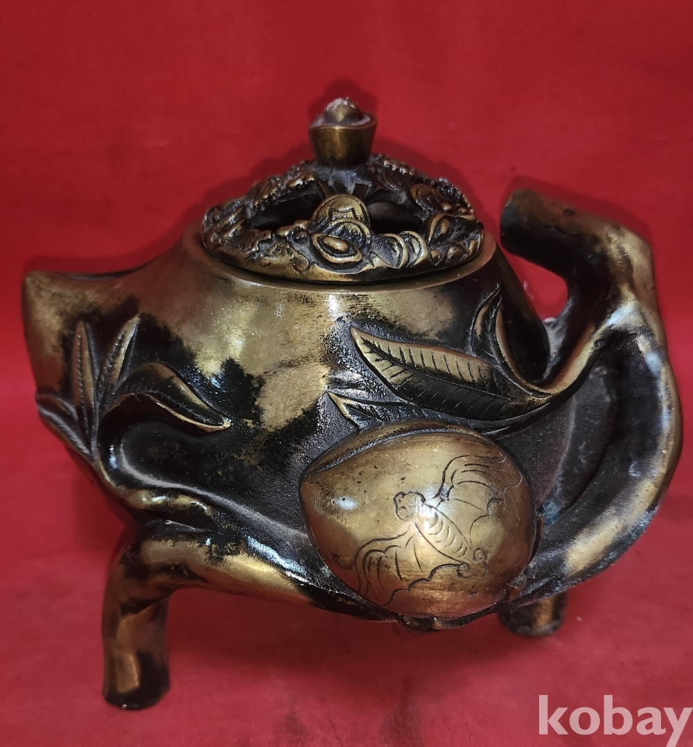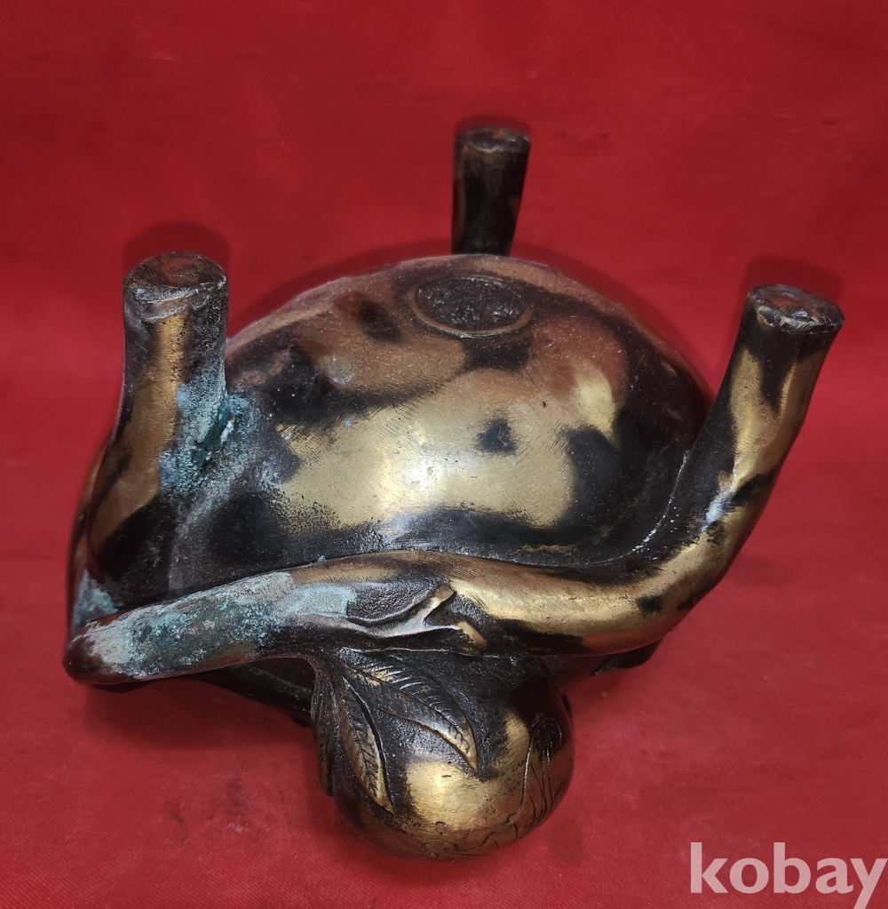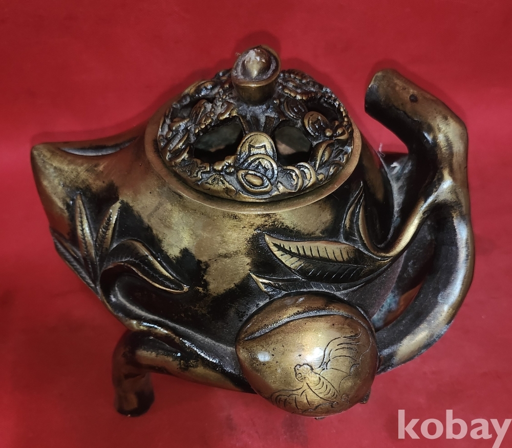 청나라 건륭어제(建隆御製) 관지있는 황동(黃銅) 박쥐와 천도복숭아 문양 향로입니다,