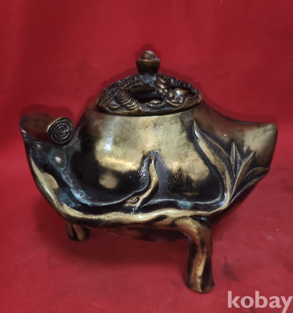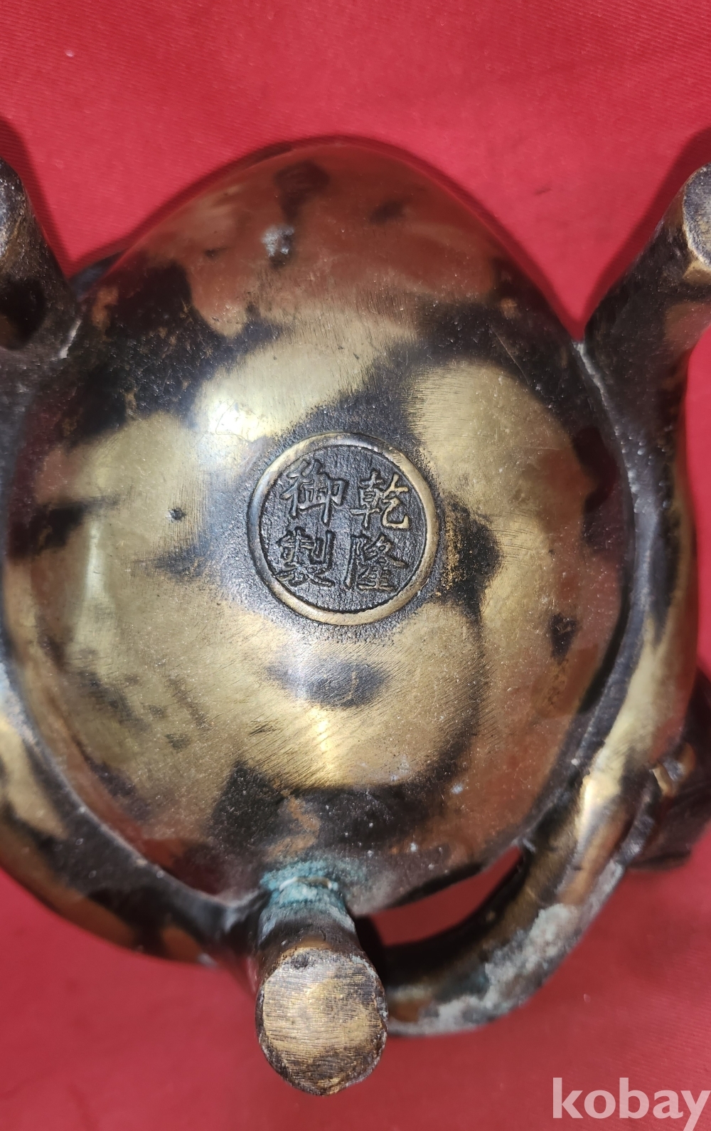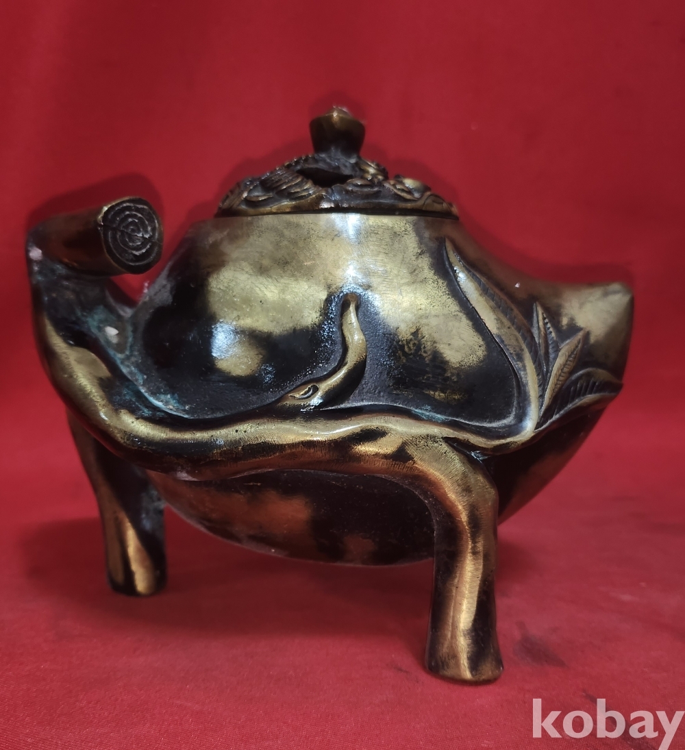 청나라 건륭어제(建隆御製) 관지있는 황동(黃銅) 박쥐와 천도복숭아 문양 향로입니다,