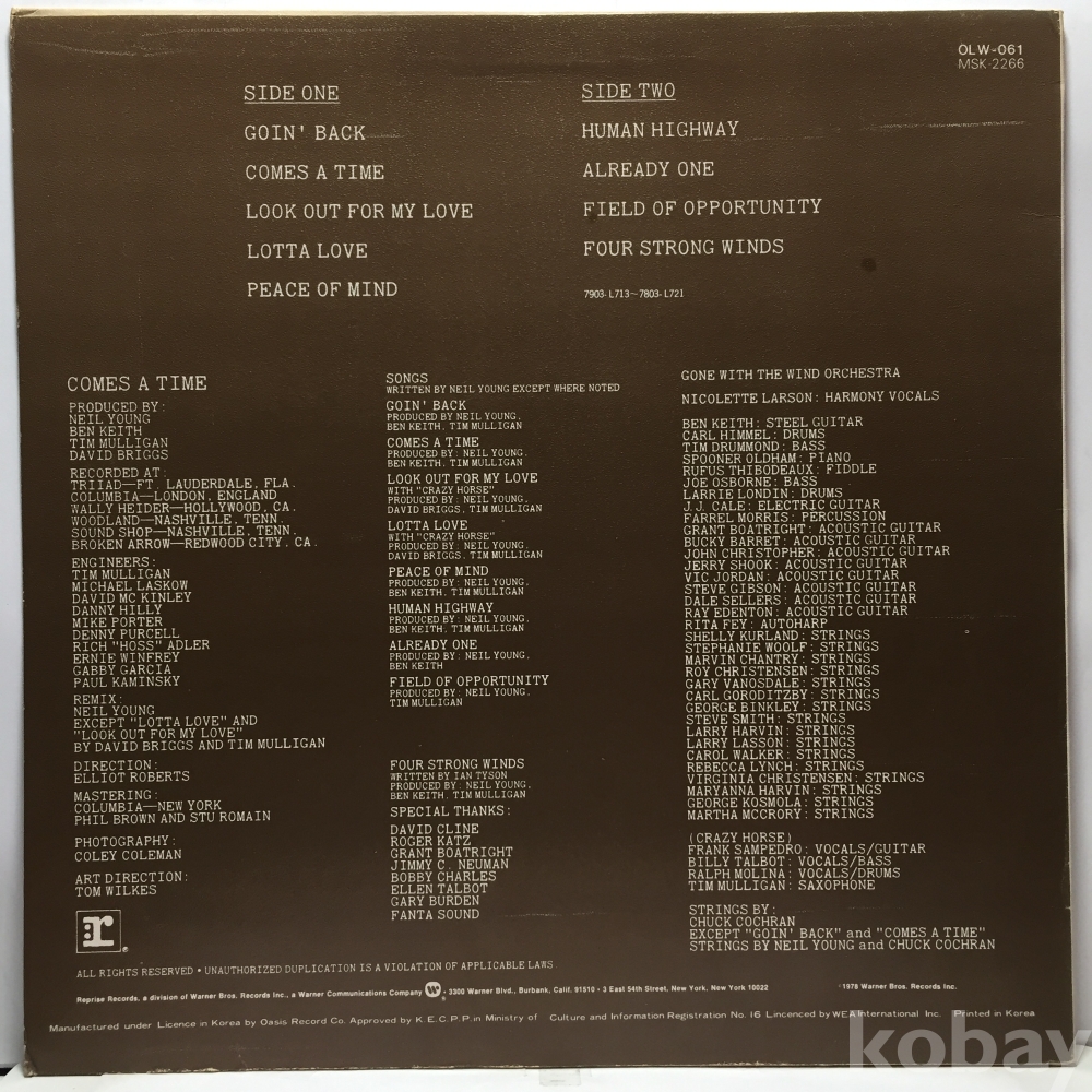 LP 82,300-28 Neil Young - Comes A Time 자켓 EX 알판 EX 79 년 국내반