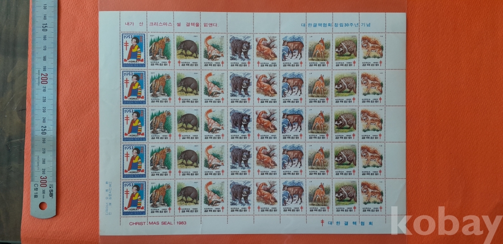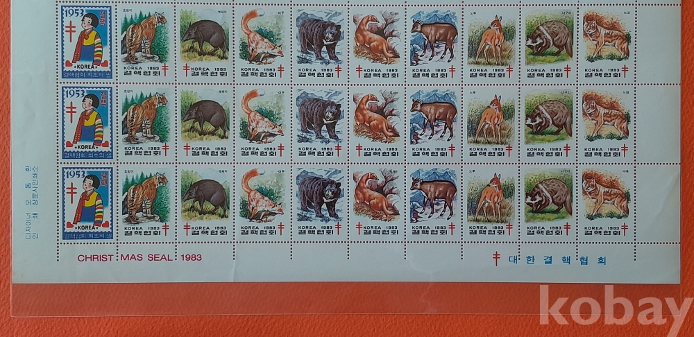 1983년 야생동물 크리스마스 씰 50매 전지 입니다.