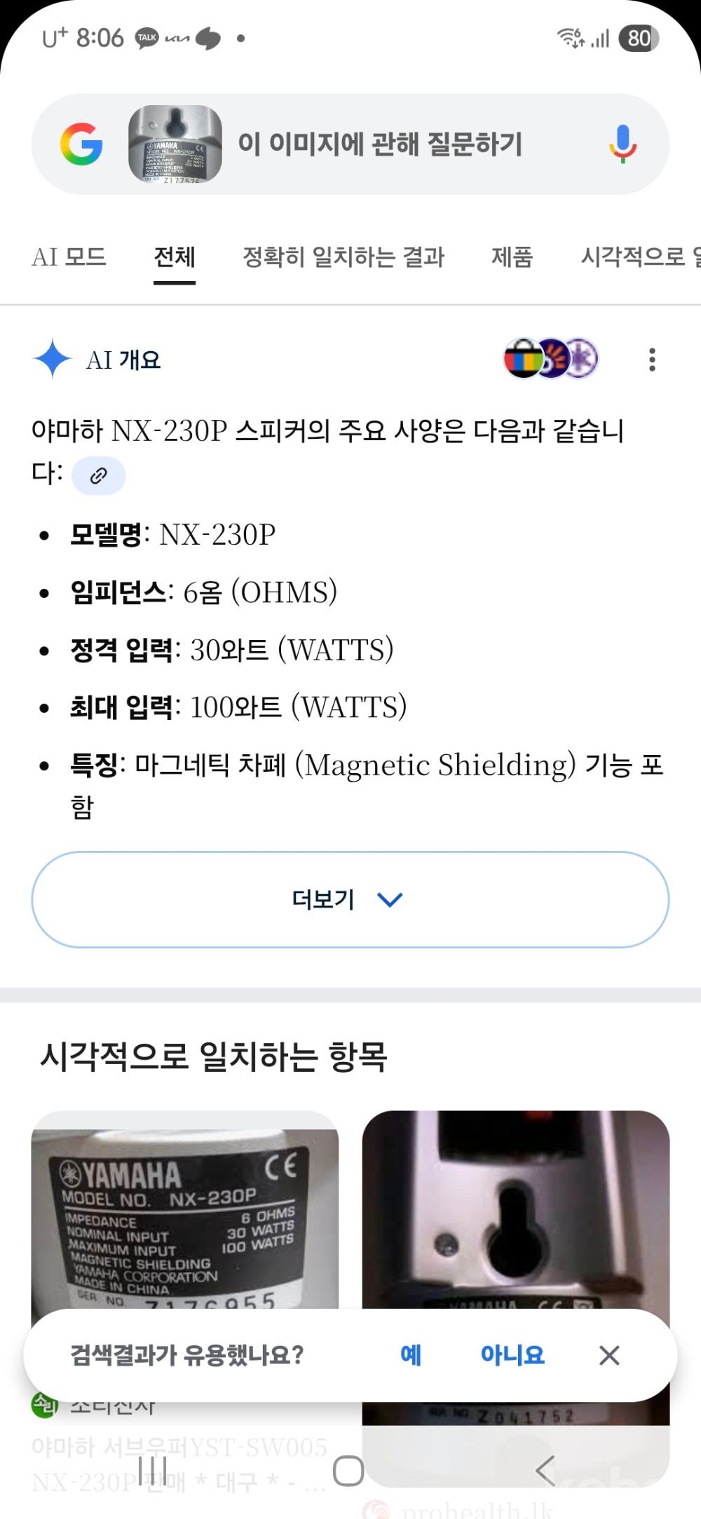 야마하 소형 스피커 NX-230P 임피던스 6오옴 최대출력 100와트 7*17*12
