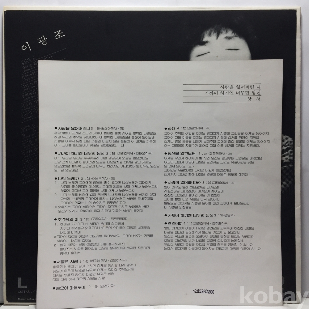 LP 82,500-12 이광조 - 사랑을 잃어버린 나 자켓 EX+ 알판 EX 85 년 국내반