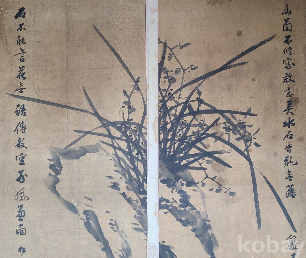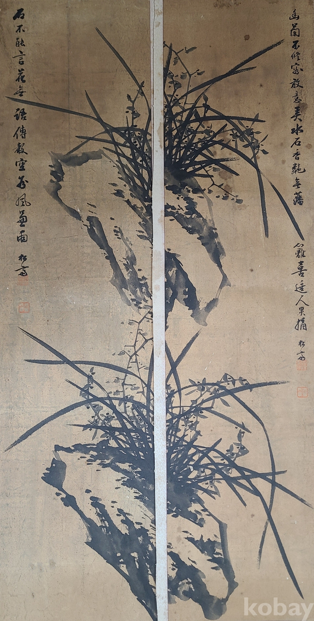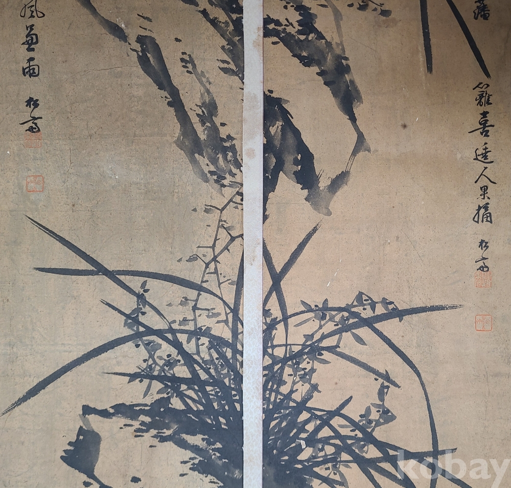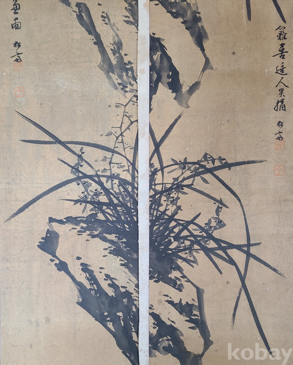 근대 서화가 송재(松齋 1899~1944) 조동욱 <석란도 石蘭圖 대련>