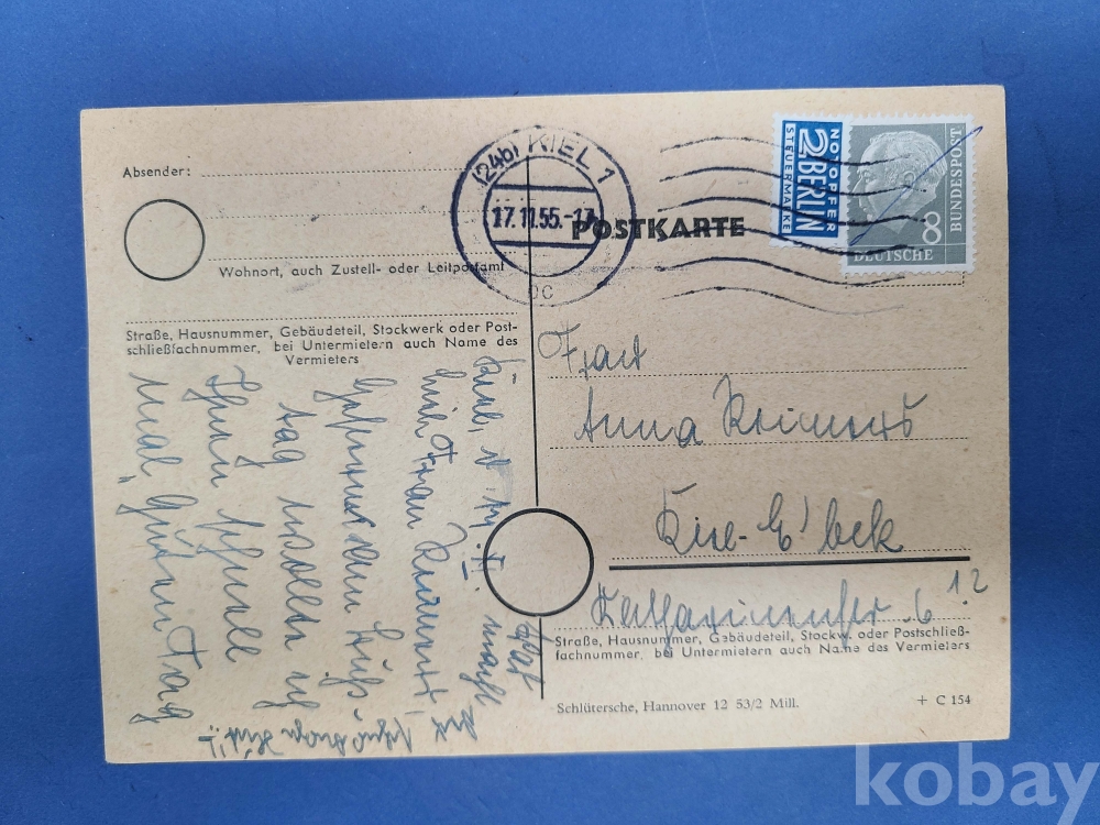 [흥미우표] 1955년 독일 강제부가금우표 첩부 첩부 엽서 실체