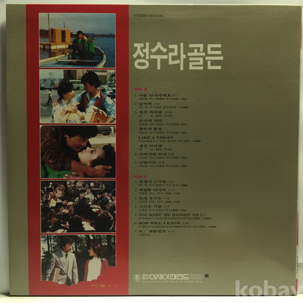 LP 250-206 정수라 골든 - 멋쟁이 그사람/ 물망초 87 아세아 자켓 EX+ 알판 EX EX+