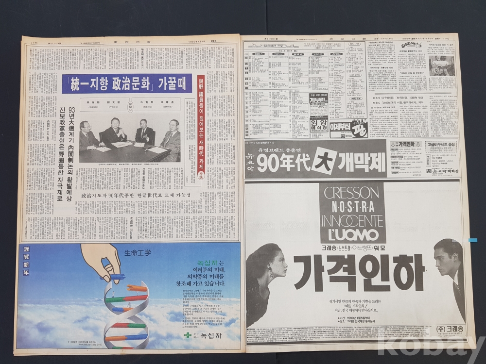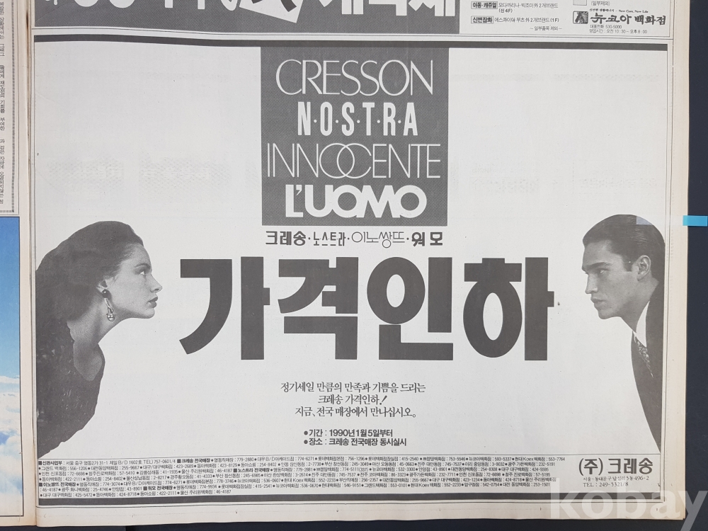 **** 1990.01.05(동아일보)/(주)크레송 가격인하 광고포함/약 20면