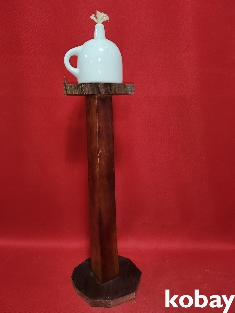 고급 나무로 만든 등잔과 등잔대입니다,