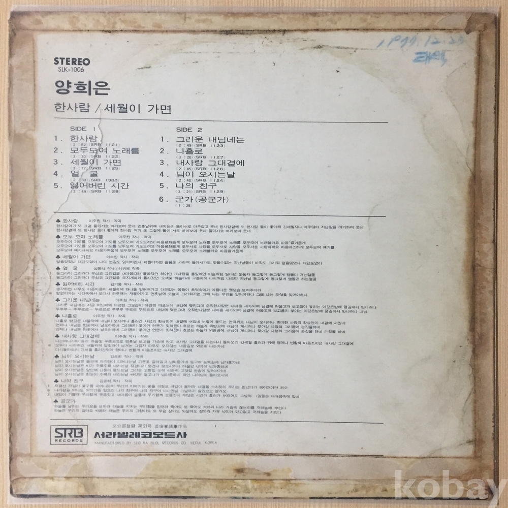 . 가요음반 대부분은 휘어짐이나 손상을 방지하기 위해 무지싱글자킷을 하나 더 사용하여 보관되었던 음반들입니다.