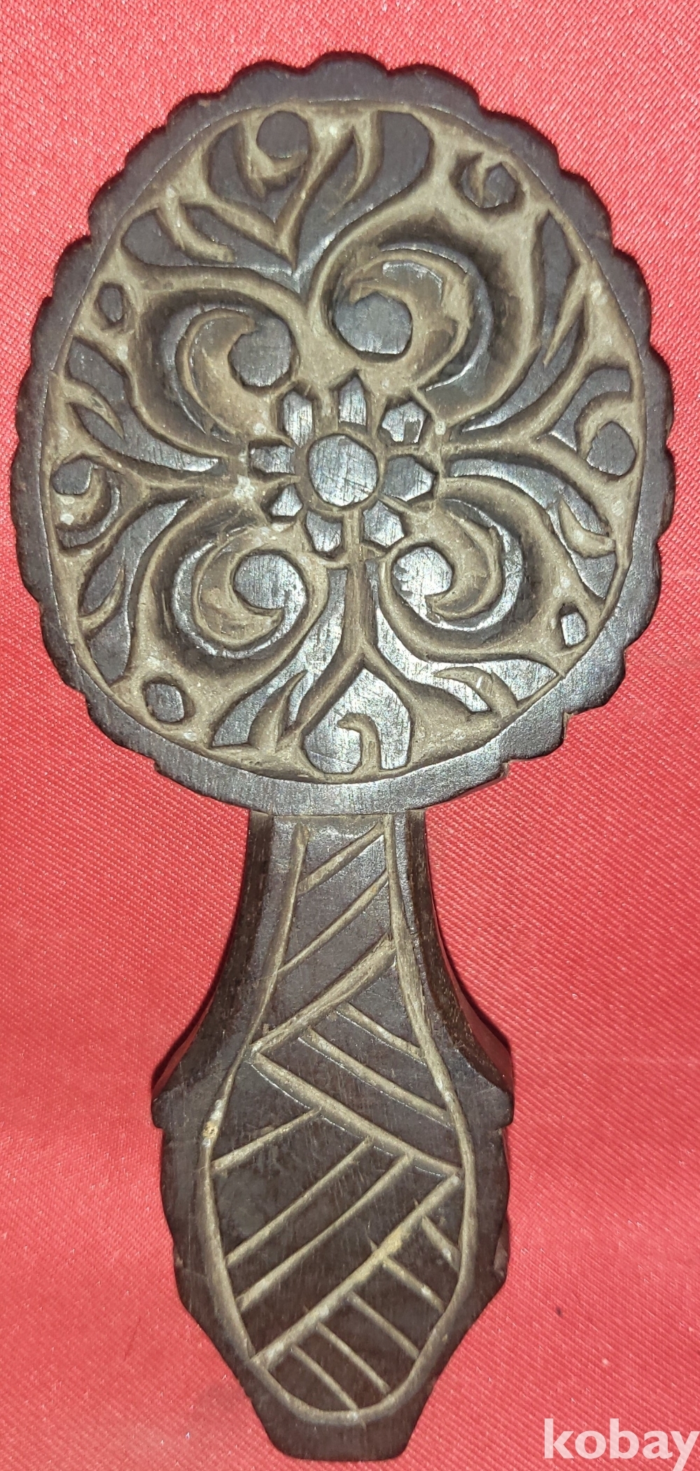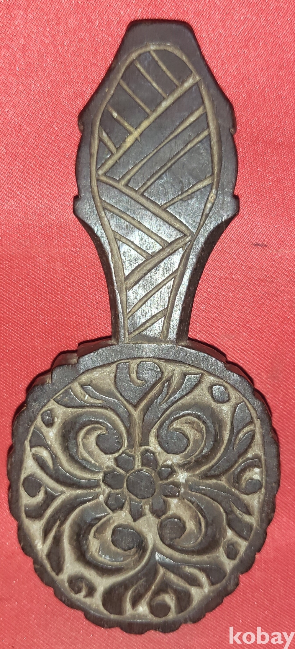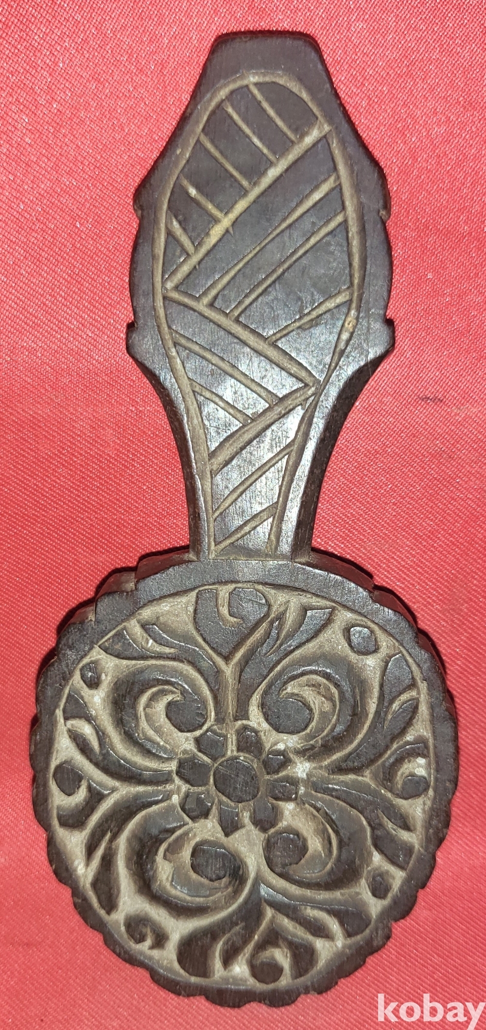 구한말 연대 갖춘 최고급 나무에 장식된 꽃문양 떡살입니다,