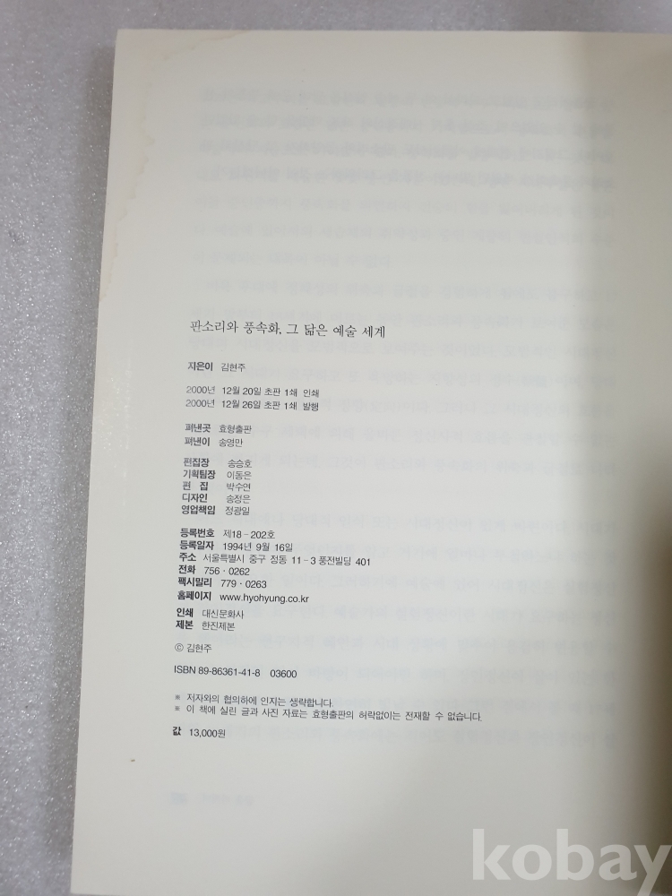{천원경매}12-0744 판소리와 풍속화(5권이상 묶음배송불가)
