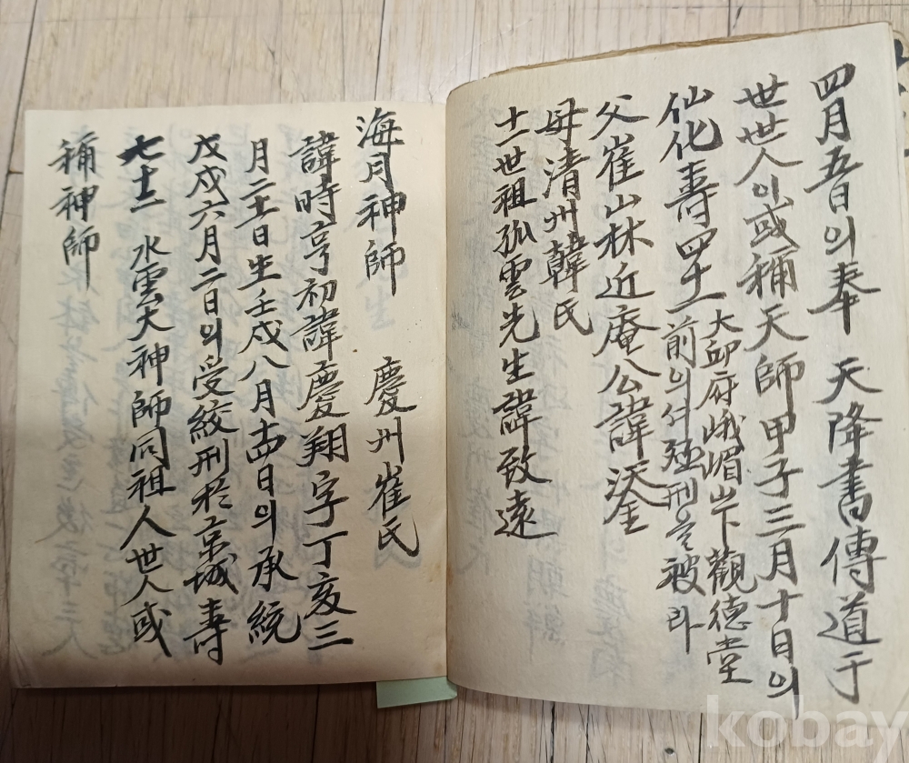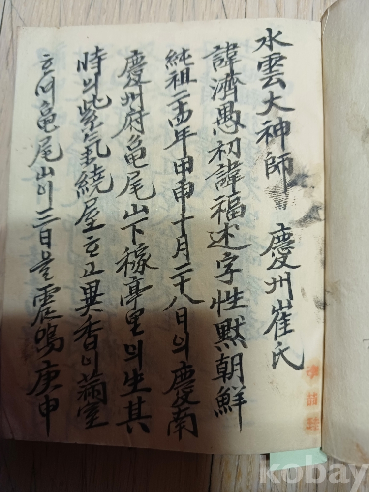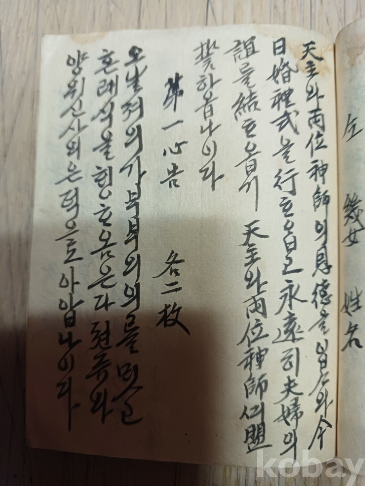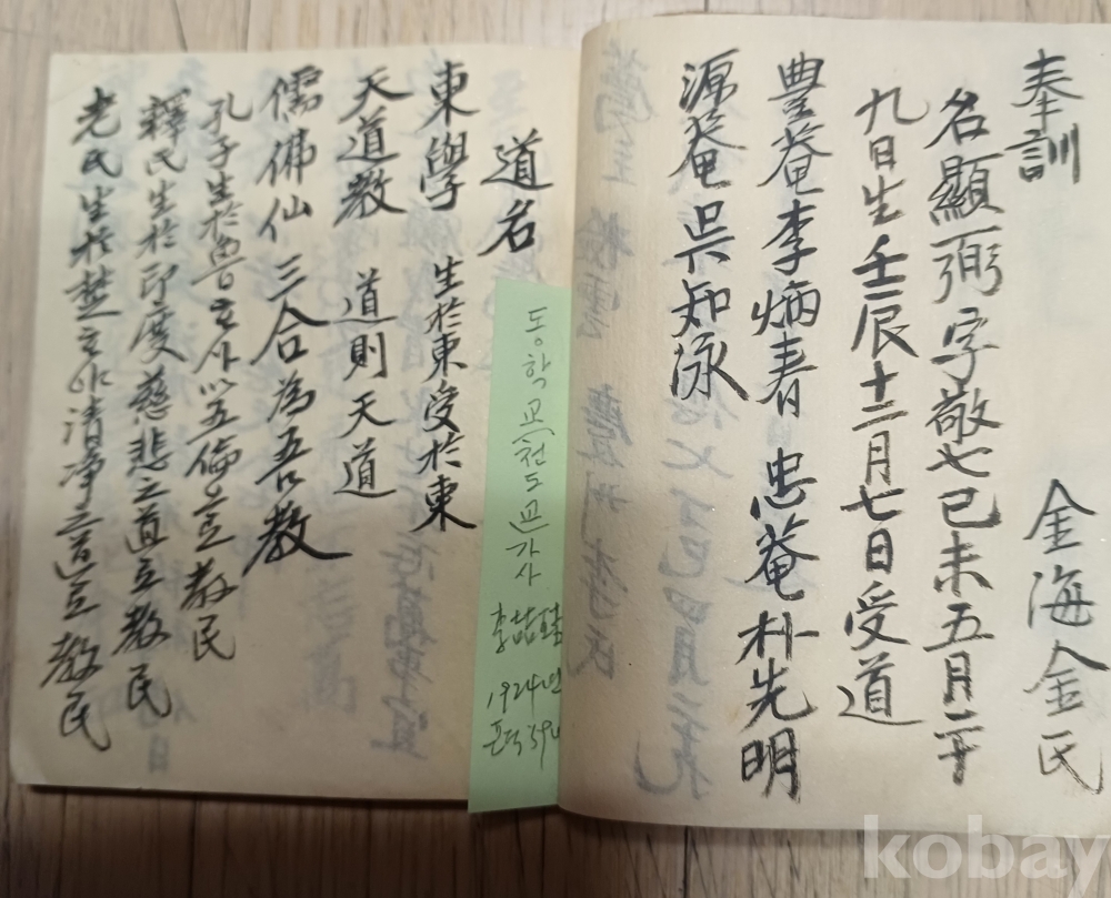상태a급 수운대사 최제우.해월신사 최시형.의암 손병희.대도주 박 인호.구암선생김 연국.권변덕.이재영 등인물수록 도명도측 등과 언문가사로 1부터 21절까지 있습니다 그다음결혼식 거해순서.전교식등이 포던간지도 있습니다