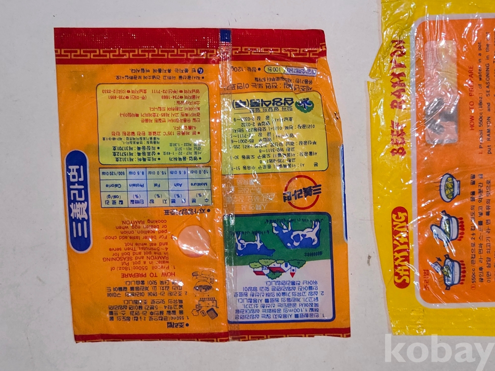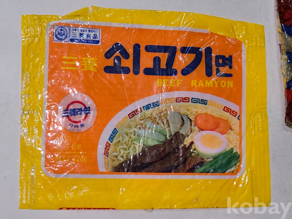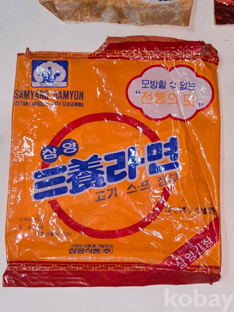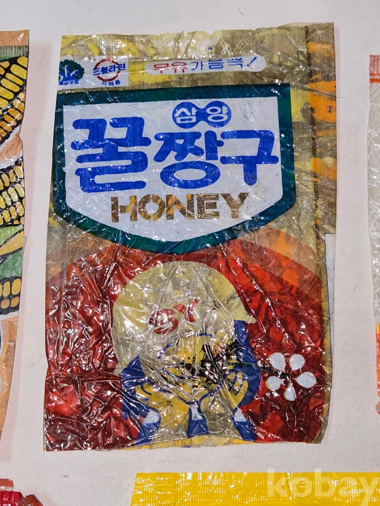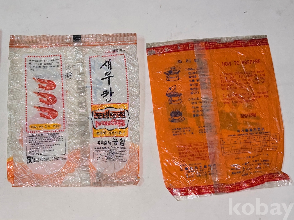 추억의 레트로 = 갸라멜.꿀짱구 .새우깡.삼양라면.쇠고기라면 등 각종다른 종류 7점 일괄 == 전시자료용