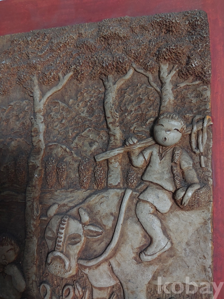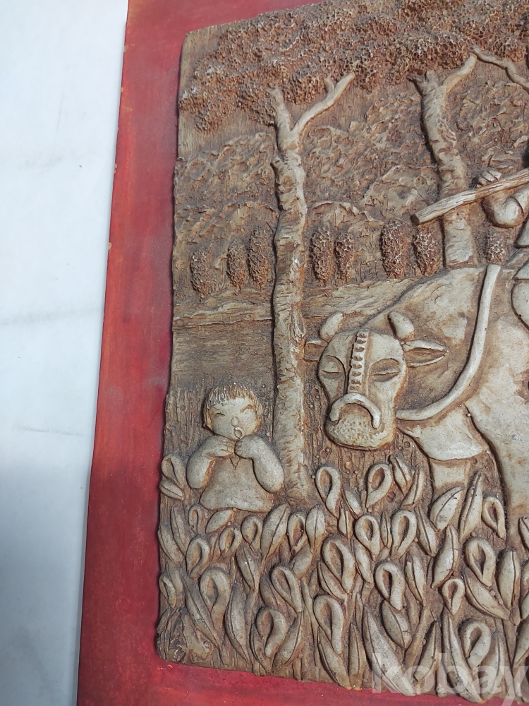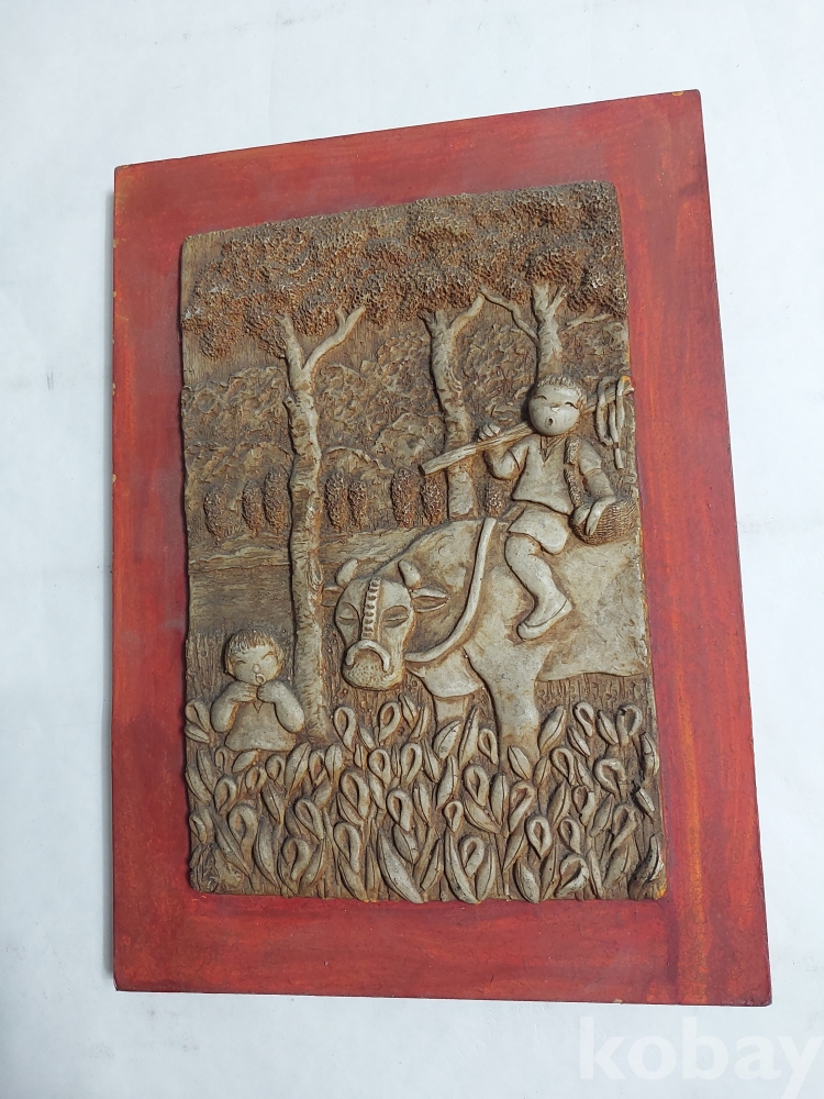 ★천원출발★ L-12.027 소타는 소년과 소녀 나무판 위 조각 작품(29*20, 23*15)