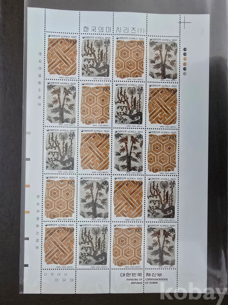 한국 미사용 전지/ 91'10.26한국의미 시리즈1집 꽃담무늬