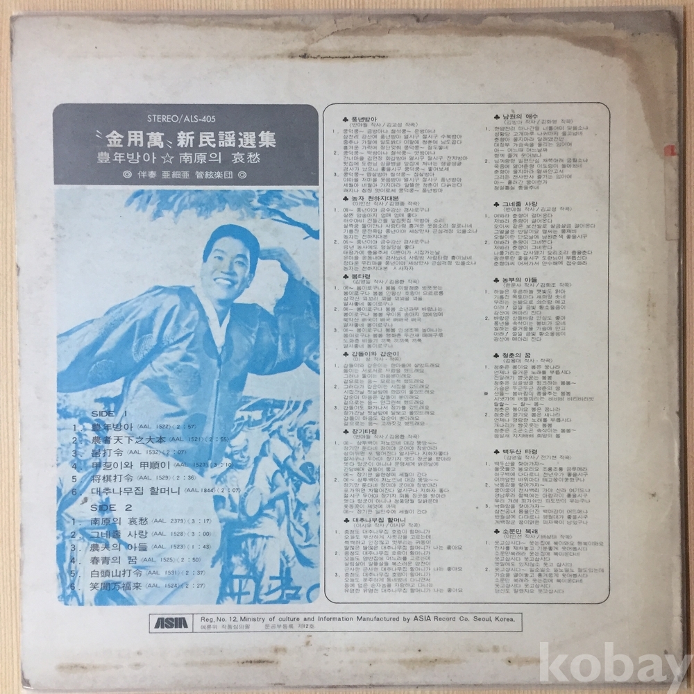 김용만 신민요선집 - 농자천하지대본 - 풍년방아/남원의 애수