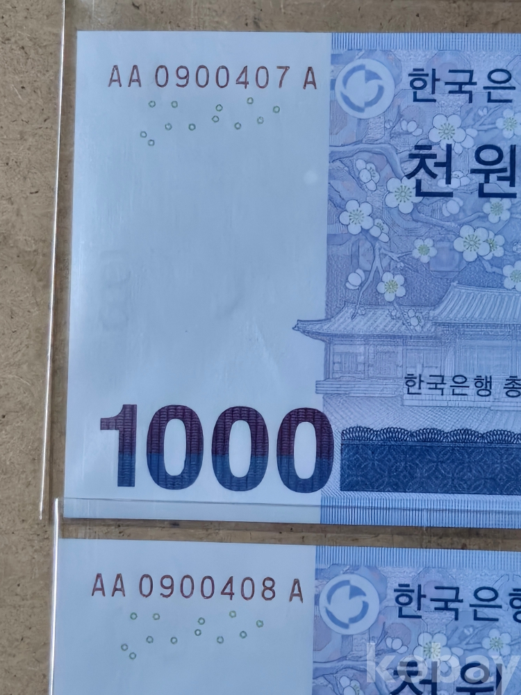 빠른번호 초판 AAA 09포인트 1000원권 연번호 2매 일괄