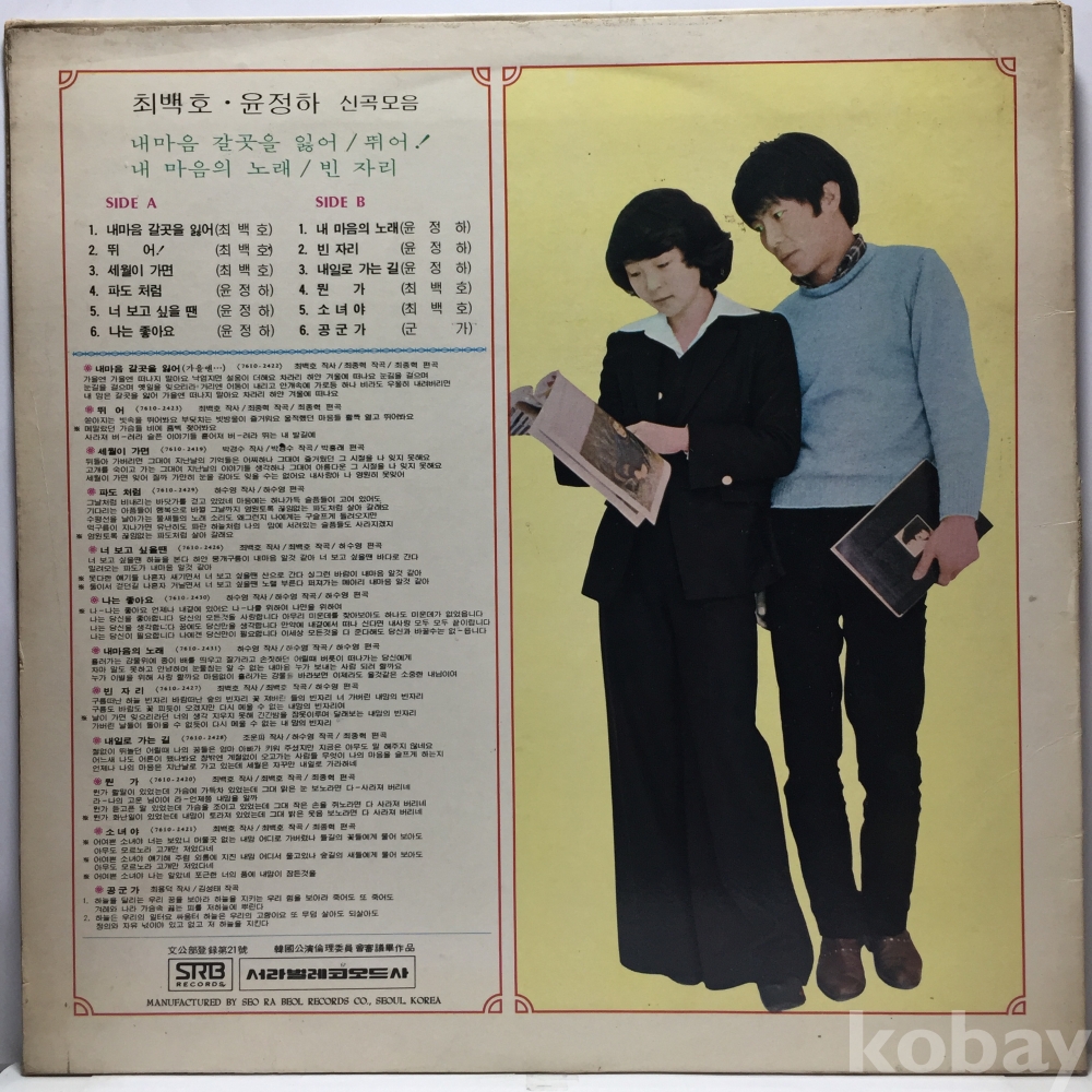 LP 81,400-51 최백호 - 내마음 갈곳을 잃어/ 뛰어 자켓 EX 알판 EX 77 년 국내반