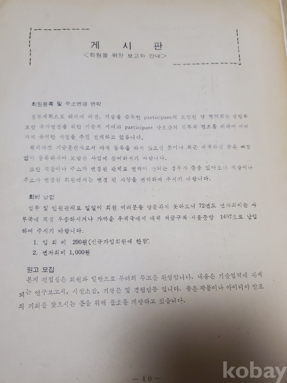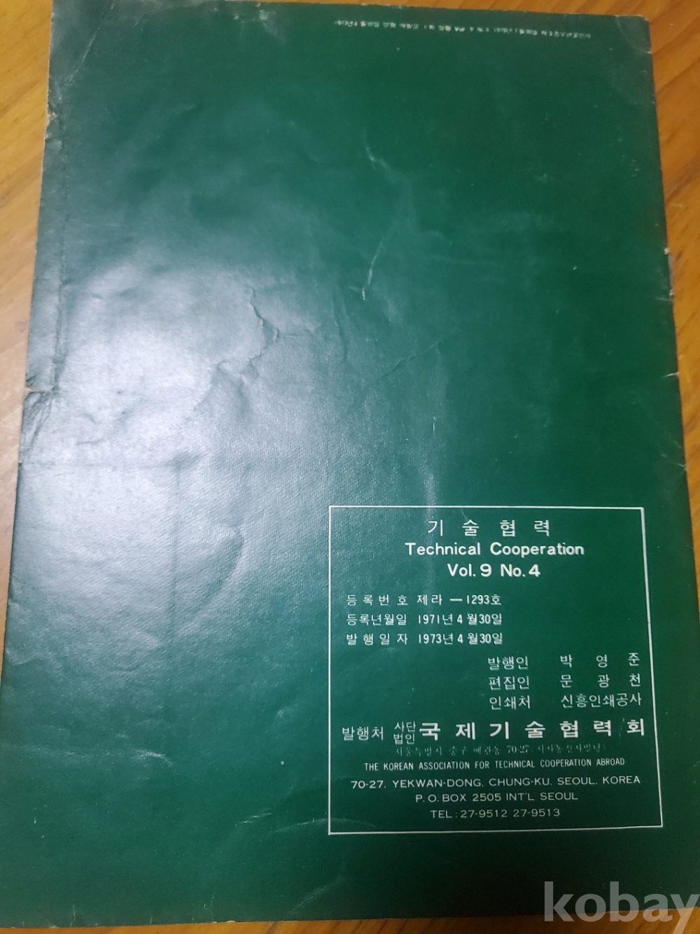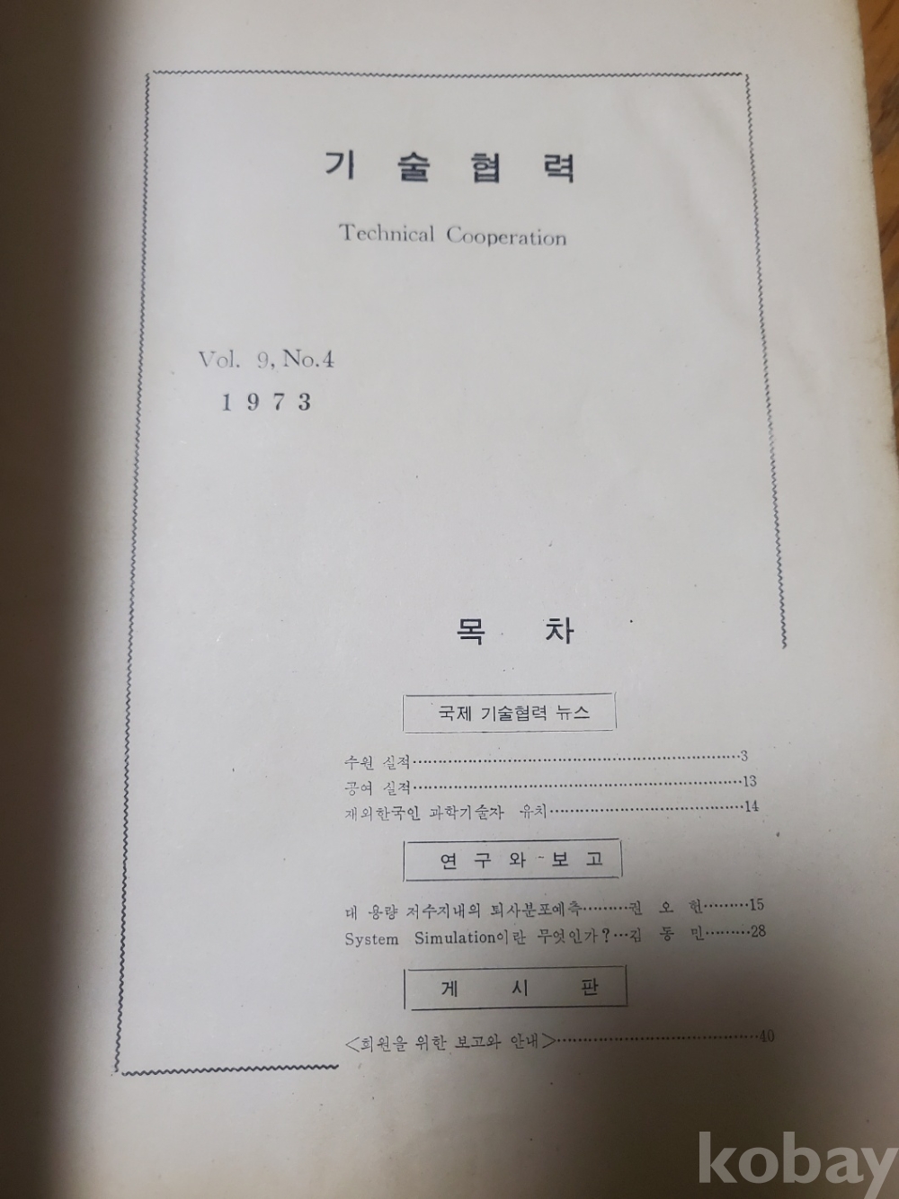 1. 기술협력 제9권 제4호, 국제기술협력회, 1973년, 40쪽, 상태 상, 사진 참조