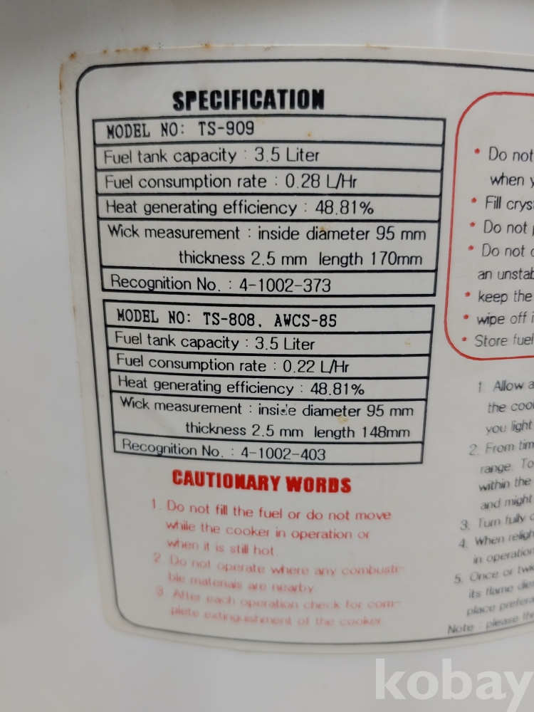""국산 Alpaca 범랑 석유곤로""