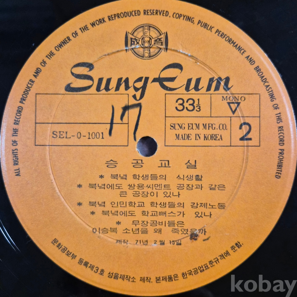 [추억의 희귀 LP 기획전] (나의 증언) 승공 교실 / 반공교육자료(1971.02.15 제작)
