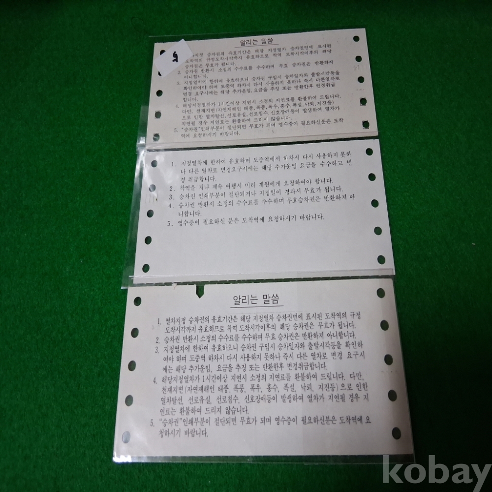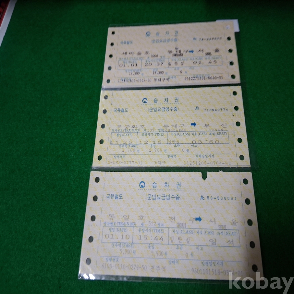 국유철도 새마을,무궁화,통일호 승차권3매 사용제