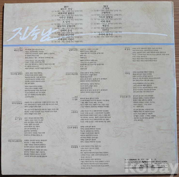 | 자켓상태 | EX : 약간의 마모, 모서리 찢김 존재 | 음반상태 | NM : 개봉했으나 미사용급, 스크래치 없음 | 발매정보 | 초반 | 가사지여부 | 유 |