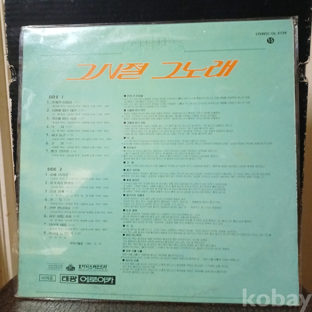| 자켓상태 | EX : 약간의 마모, 모서리 찢김 존재 | 음반상태 | EX : 재생에 영향 없는 가벼운 기스 존재 | 발매정보 | 초반 | 가사지여부 | 무 |