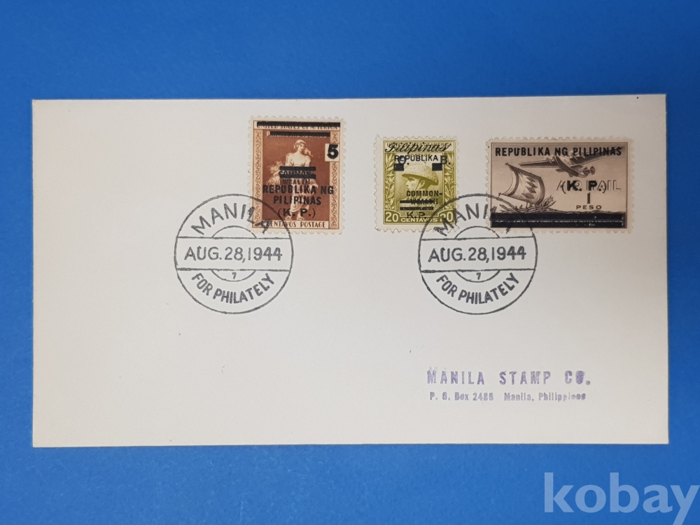 **** 필리핀 마닐라 스탬프/1944.8.28/우표3매 첩부